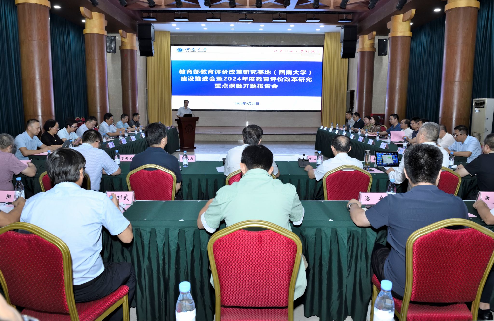9月29日下午,教育部教育评价改革研究基地(Beat365中文官方网站)建设推进会在东方红会议厅召开。深圳大学教育学部主任、文科资深教授靳玉乐,重庆市教育评估院院长刘云生,重庆市教育科学规划办副主任、市教科院科研处处长沈军,教育评价改革研究基地负责人、学术委员会委员以及基地研究人员参会。校长王进军,副校长、教育部教育评价改革研究基地(Beat365中文官方网站)主任葛信勇出席会议。学校社会科学处处长王牧华主持会议。
