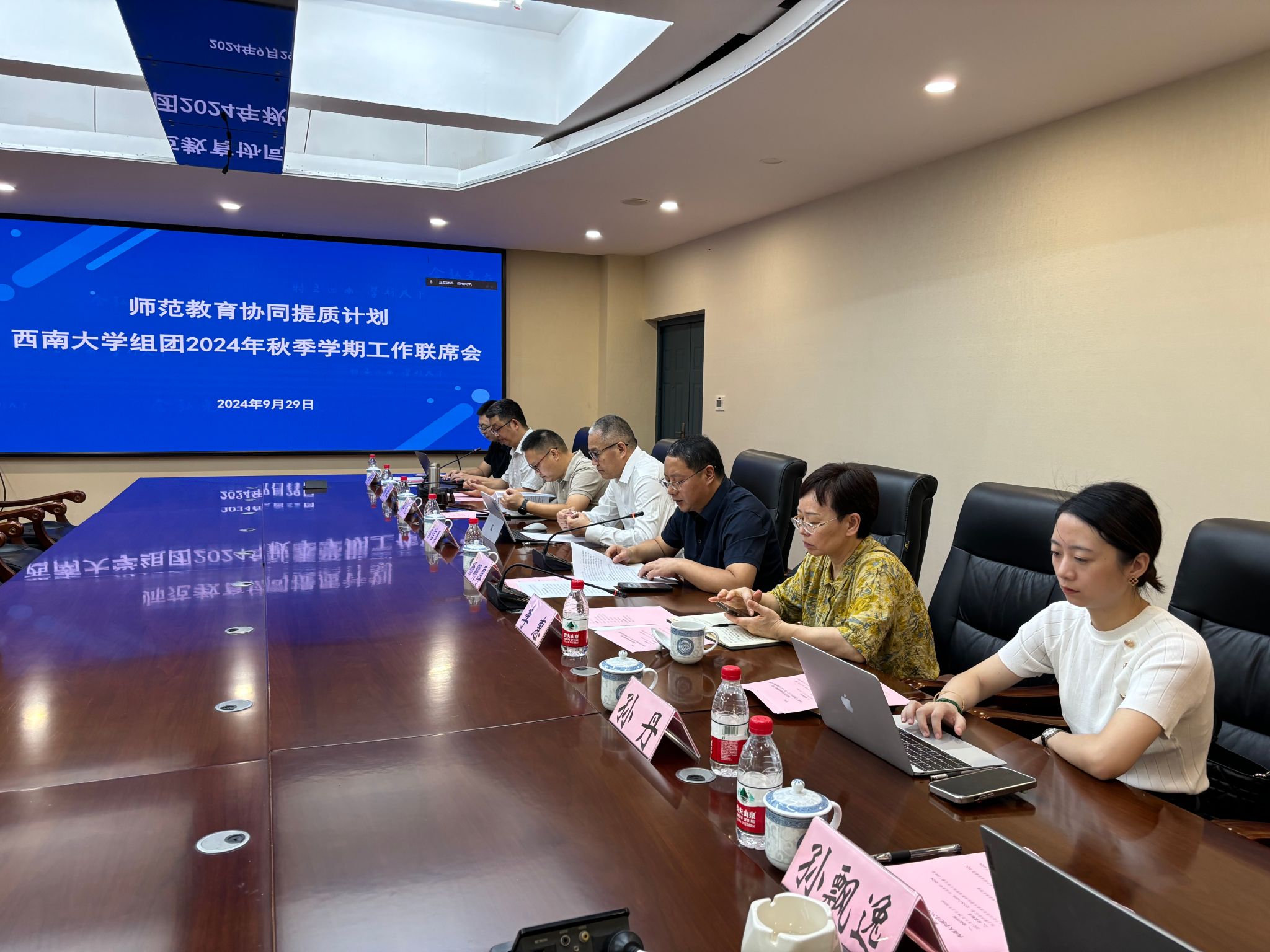 2024年9月29日上午,师范教育协同提质计划Beat365中文官方网站组团2024年秋季学期工作联席会议在教师教育学院召开。Beat365中文官方网站、新疆师范大学、山东师范大学、重庆师范大学、和田师范专科学校、河西学院、长江师范学院相关校领导及有关职能部门负责人出席会议。会议以线上线下相结合的方式举行。