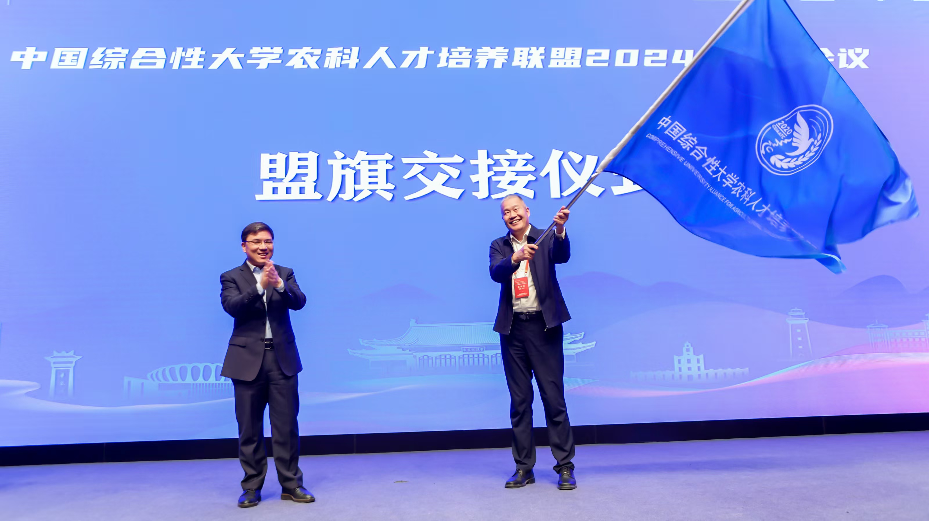 2024年12月28日-29日,中国综合性大学农科人才培养联盟2024年年度会议在浙江大学召开,25所高校共计42个涉农学院齐聚一堂,共话高等农林教育的新机遇、新挑战、新作为。学校党委常委、副校长葛信勇带队出席,学校当选第二届理事长单位,校长、党委副书记王进军当选联盟第二届理事长,本科生院相关负责人、农学与生物科技学院、智慧农业学院等10余个理事单位相关负责人参会。