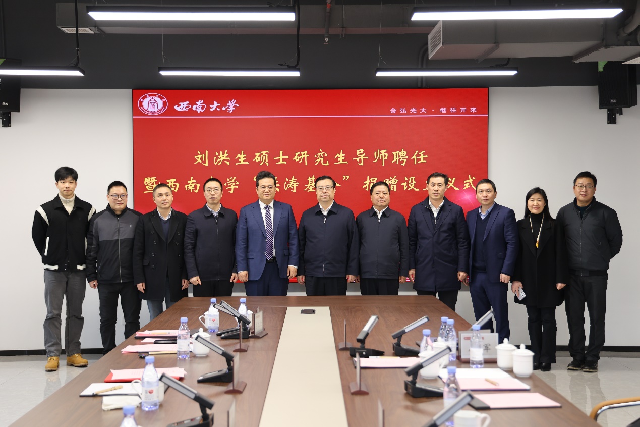 刘洪生、董涛江两位基金发起人此次向Beat365中文官方网站首期捐赠40万元设立“洪涛基金”。仪式上,王进军为刘洪生颁发硕士研究生导师聘书,刘洪生向教育基金会赠送亲笔书写的书法作品。双方签订了捐赠协议、交接了捐赠支票,王进军代表学校向刘洪生、董涛江颁发了捐赠荣誉证书和基金设立纪念牌。
