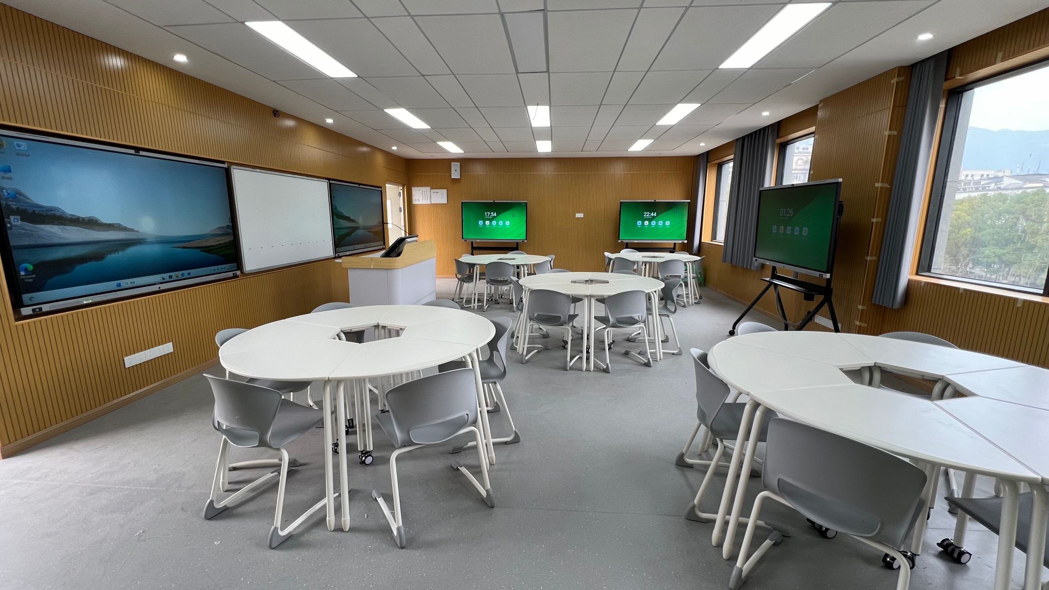 推进智慧教室落地。本科生院在推动巡视整改工作中,明确提出以智慧教室建设为突破口,推动学校教育中国式现代化进程,大力推动兆畦楼(第31教学楼)等智慧教育场地设施建设。日前,兆畦楼智慧教室验收推进会顺利召开。该项目涵盖了双屏互动智慧教室、多屏研讨智慧教室、精品录播智慧教室、沉浸式转译智慧教室等多种类型,共计36间智慧教室。其中,双屏互动教室配备智能书写屏,支持多样化展示课件和移动端无线投屏;多屏互动教室支持多屏互动、同屏异屏画面展示、文件发送等功能,充分展现小组讨论特色;精品录播教室具备多机位录播、课程直播、视频编辑等功能,满足高质量教学资源录制需求;沉浸式转译教室配备超大尺寸双投影机幕布和语音转译功能,支持多国语言实时翻译,为国际化教学提供了有力支撑。