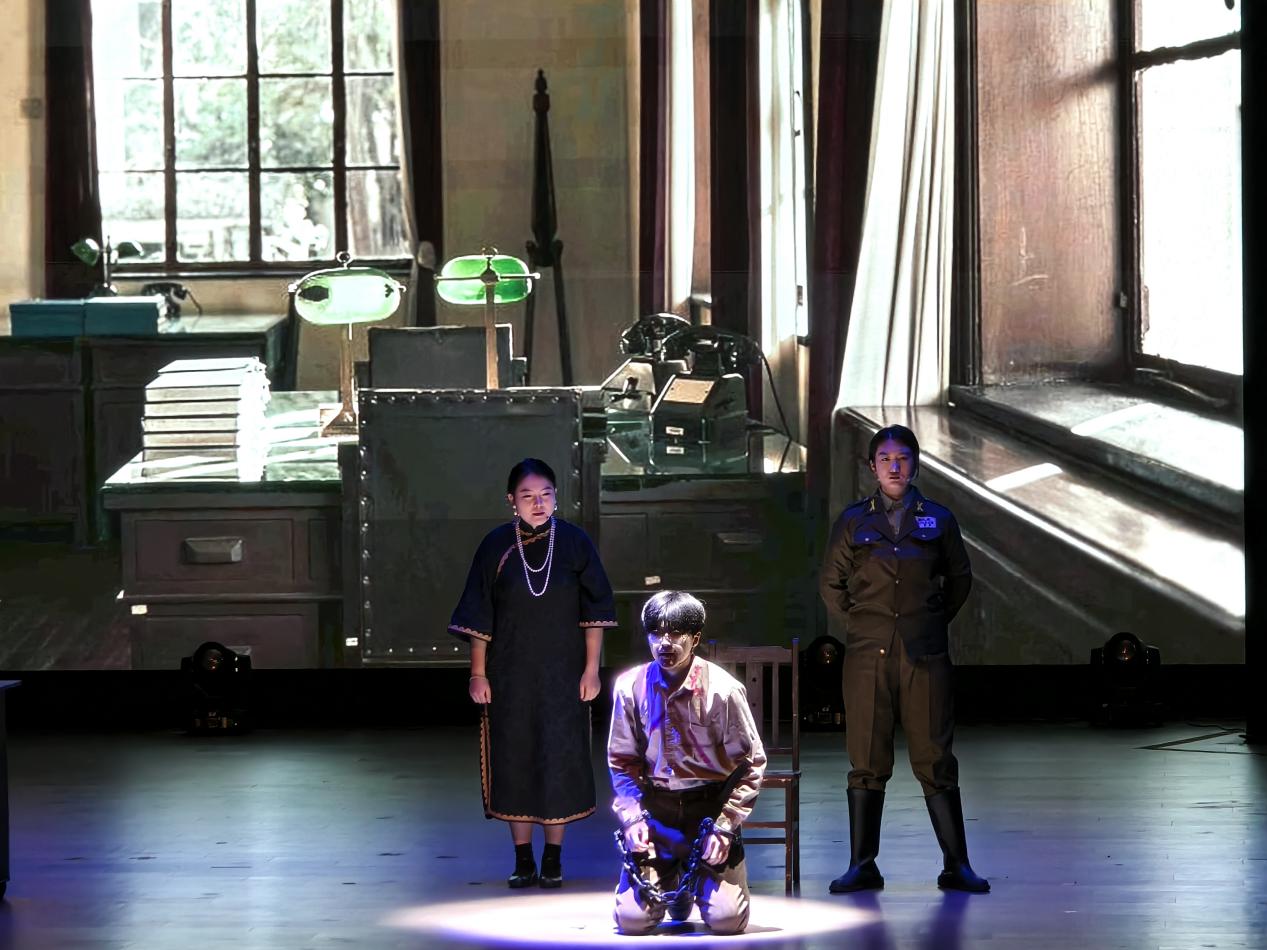 活动现场,学校团委选送的原创红色舞台剧《英雄的儿子 伟大的母亲》引发热烈反响。该剧由马克思主义学院青马剧社倾力打造,通过虚实相生的舞台设计、富有张力的戏剧表演和细腻动人的情节铺陈,创造性实践“艺术思政”育人理念——以青年审美重构红色叙事,以个体命运彰显家国情怀,成功实现历史记忆的青春化表达。演出过程中,艺术与信仰的交融迸发出强烈感染力,博得现场观众阵阵掌声。