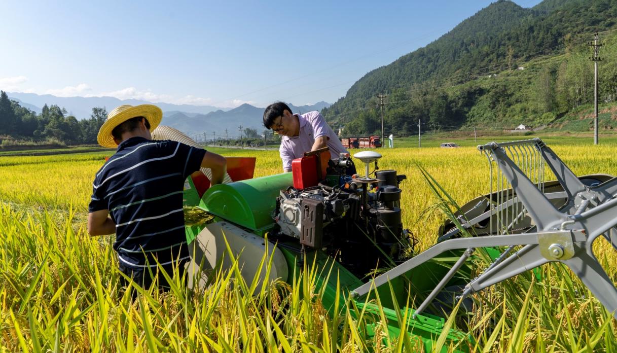 2023年9月,学院教师在田间测试即将推广应用的无人驾驶水稻收割机
