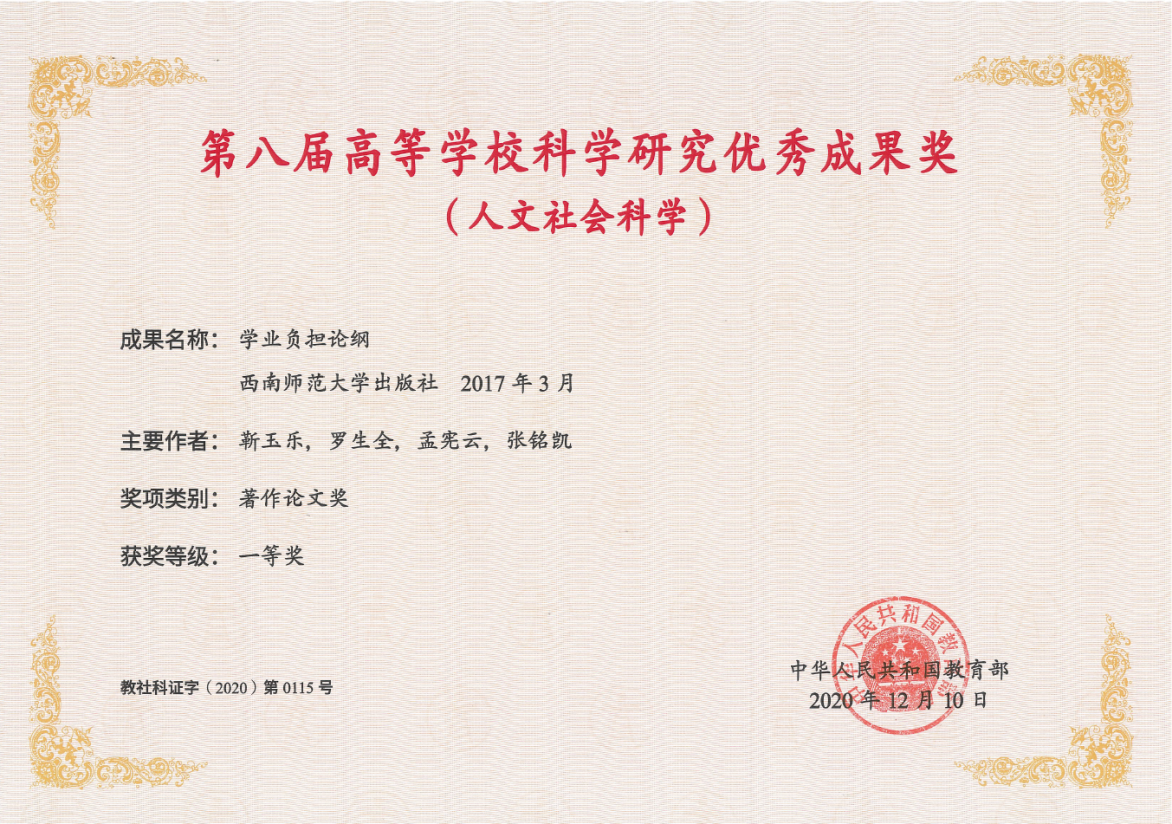 2020年12月,学校成果获第八届高等学校科学研究优秀成果奖一等奖。