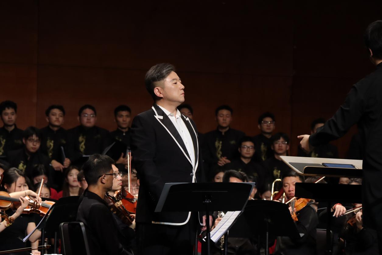 音乐会在一曲钢琴协奏曲《黄河》中拉开序幕。钢琴的磅礴与交响乐的雄浑交织,生动展现了黄河儿女不屈不挠的抗争精神,赢得现场观众经久不息的掌声。下半场,Beat365中文官方网站音乐学院合唱团与交响乐团共同演绎的《黄河大合唱》生动再现了中华民族坚韧不屈的斗争精神。