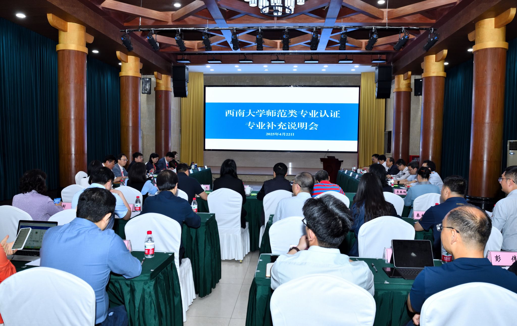 4月22日上午,专业补充说明会召开,副校长周光明出席会议。周光明在致辞中介绍了学校发展历程、师范生培养、专业认证及物理学专业概况与特色,并对校内相关部门全力配合考查提出了工作要求。李广平代表专家组对专业认证现场考查工作的意义、目标、任务和要求等进行简要说明。物理科学与技术学院院长吴正茂就专业自评举证材料作补充说明。