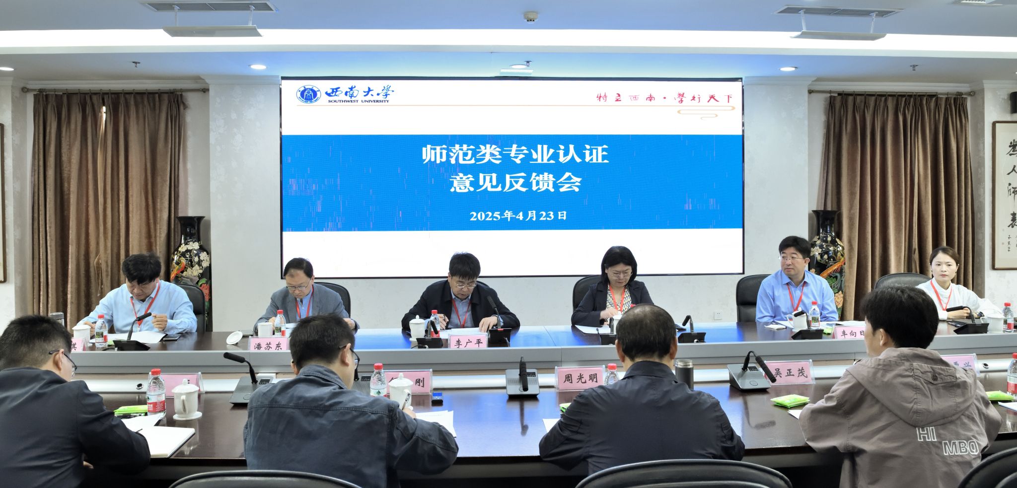 周光明、吴正茂分别代表学校、专业作表态发言。周光明表示,学校全盘接受专家反馈意见,将站在“为党育人、为国育才”的高度,本着对学生和社会负责的态度,把反馈意见作为深化教育教学改革的着力点和落脚点,进一步坚定推进本科教育高质量发展的信心和决心。他指出,学校将基于“质量”主题,以专业认证为核心抓手,围绕“基于综合、立于专业、归于个性”的人才培养理念,真正做到“以评促强”,同时将把握未来教师教育发展方向,优化顶层设计,推动实践探索,破解发展瓶颈,着力建设一流教师教育和一流师范专业,为推进教育强国建设贡献Beat365中文官方网站应有的力量。