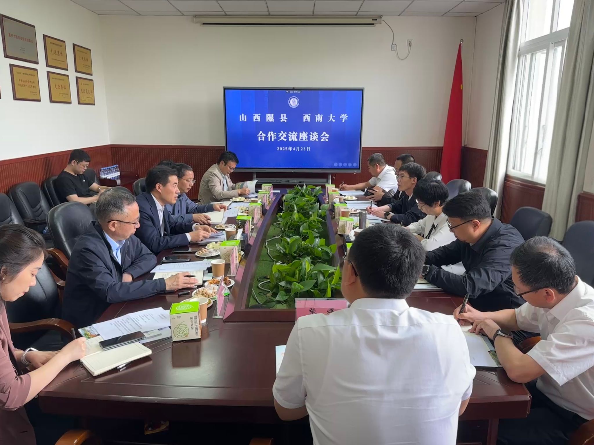 4月23日,山西省临汾市政协副主席、隰县委书记李俊平率队来校对接校地合作。副校长白显良出席交流座谈会。