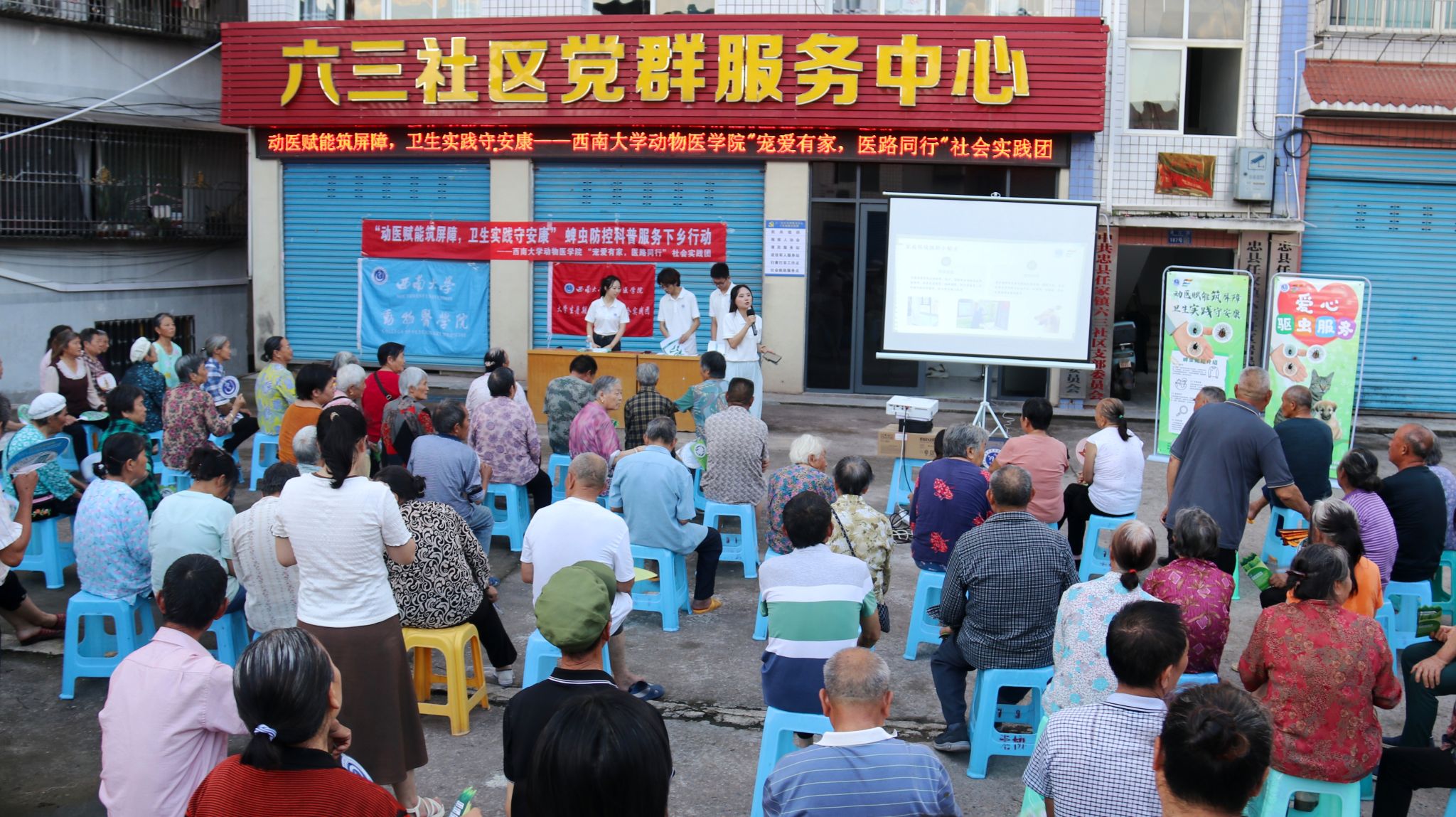 6月30日至7月3日,动物医学院“宠爱有家,医路同行”社会实践团赴重庆市忠县任家镇开展社会实践。实践团成员深入生猪养殖基地进行调研,举办蜱虫防控科普宣讲会,并为家养犬猫提供爱心驱虫服务,将动物医学专业知识转化为服务乡村的行动,有效提升了当地居民公共卫生安全意识。