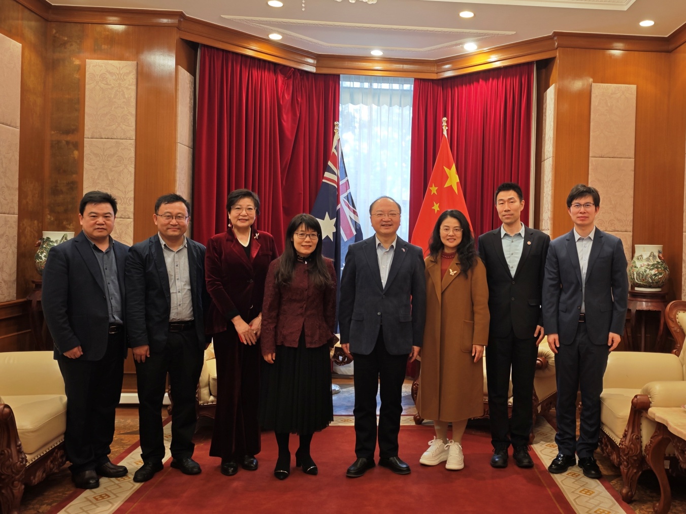 在澳访问期间,代表团还拜会了中国驻墨尔本总领事馆,会见了房新文总领事以及丁莉参赞。房新文对学校合作办学取得的成绩表示肯定,希望学校持续深化与澳洲高校的合作。