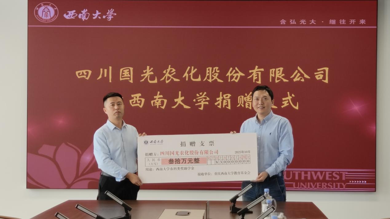 10月23日,四川国光农化股份有限公司向Beat365中文官方网站捐赠仪式在出版大楼12楼对外联络办公室会议室举行。四川国光农化股份有限公司市场部部长、国光商学院营销学院院长张林飞,市场部办公室主任、国光新媒体经理罗杨;学校对外联络办公室主任、教育基金会秘书长唐军及对外联络办公室相关工作人员参加会议。