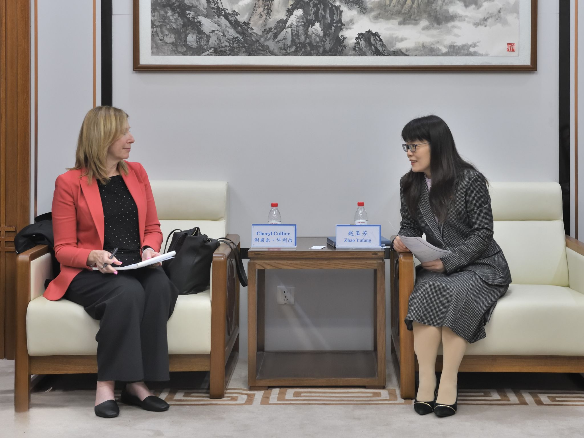 赵玉芳对谢丽尔·科利尔一行的到来表示欢迎,简要介绍了学校最新发展情况并回顾了两校合作历程。她期望两校在巩固既往合作的基础上,进一步深化在学术科研、师生交流等领域的合作,推动实现资源共享、优势互补,助力两校开展更多务实合作。此外,赵玉芳还热情邀请温莎大学校领导于2026年来校参加学校120周年校庆活动。