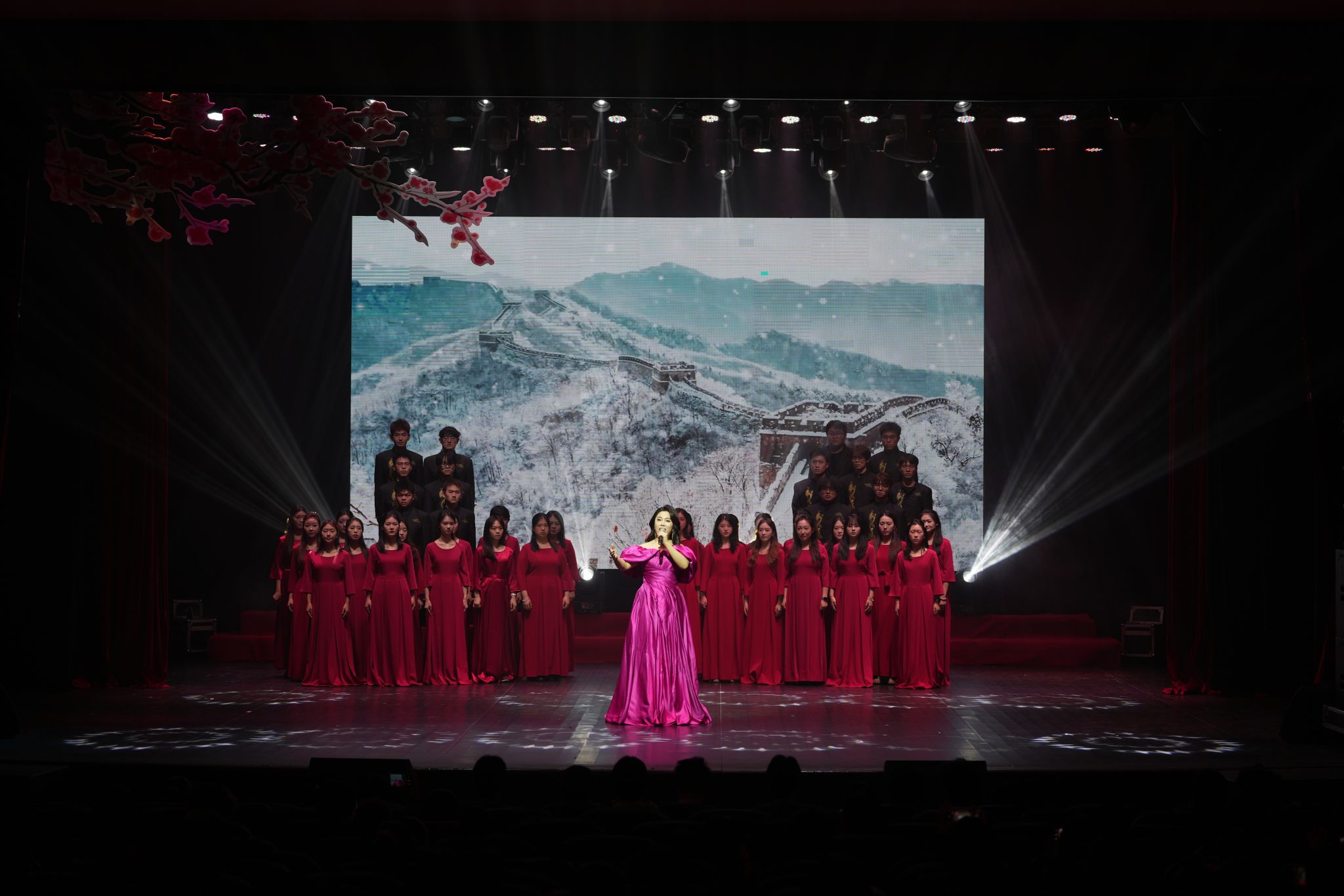 四个篇章的演绎精彩纷呈,合唱《沁园春·雪》以青春朝气歌颂先辈们不畏艰苦、朝夕为国的铮铮誓言,激励新时代青年厚植家国情怀、勇担时代重任;歌舞《红旗颂》则通过中国舞的优美语汇,编织出一曲对革命岁月的无声赞歌;诵读《我的自白书》饱含深情、铿锵有力,鼓舞青年以英雄为榜样,坚定理想信念,团结奋进、砥砺前行……演员们全情投入、演绎动人,现场掌声阵阵,气氛庄重而热烈。
