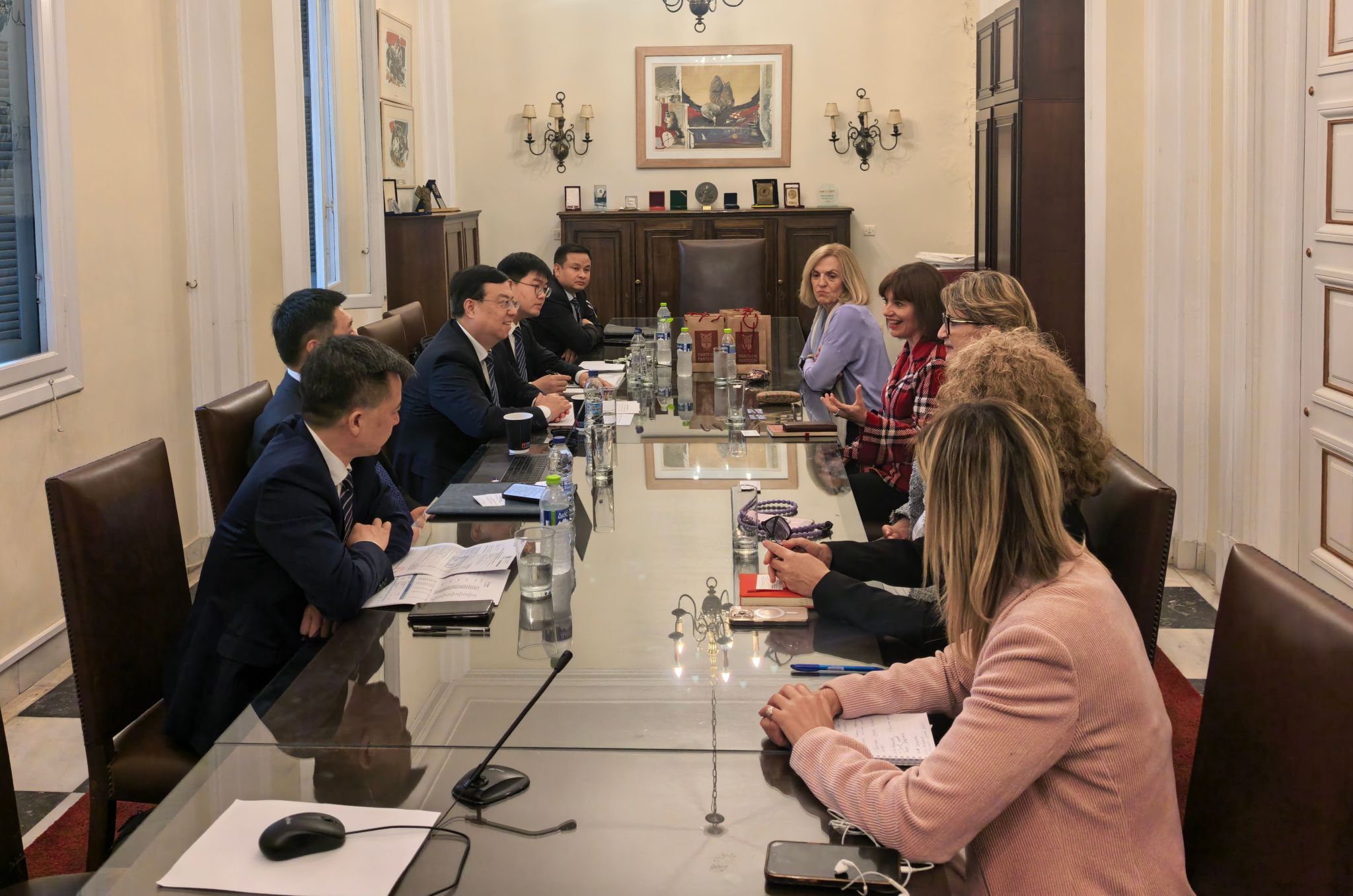 此外,代表团还拜访了希腊教育部副部长、亚里士多德大学前任校长尼古拉奥斯·帕帕约安努(Nikolaos Papaioannou),中国驻希腊大使馆相关负责人,就进一步务实推动中心建设、强化学校与希腊高校及研究机构交流合作交换意见。