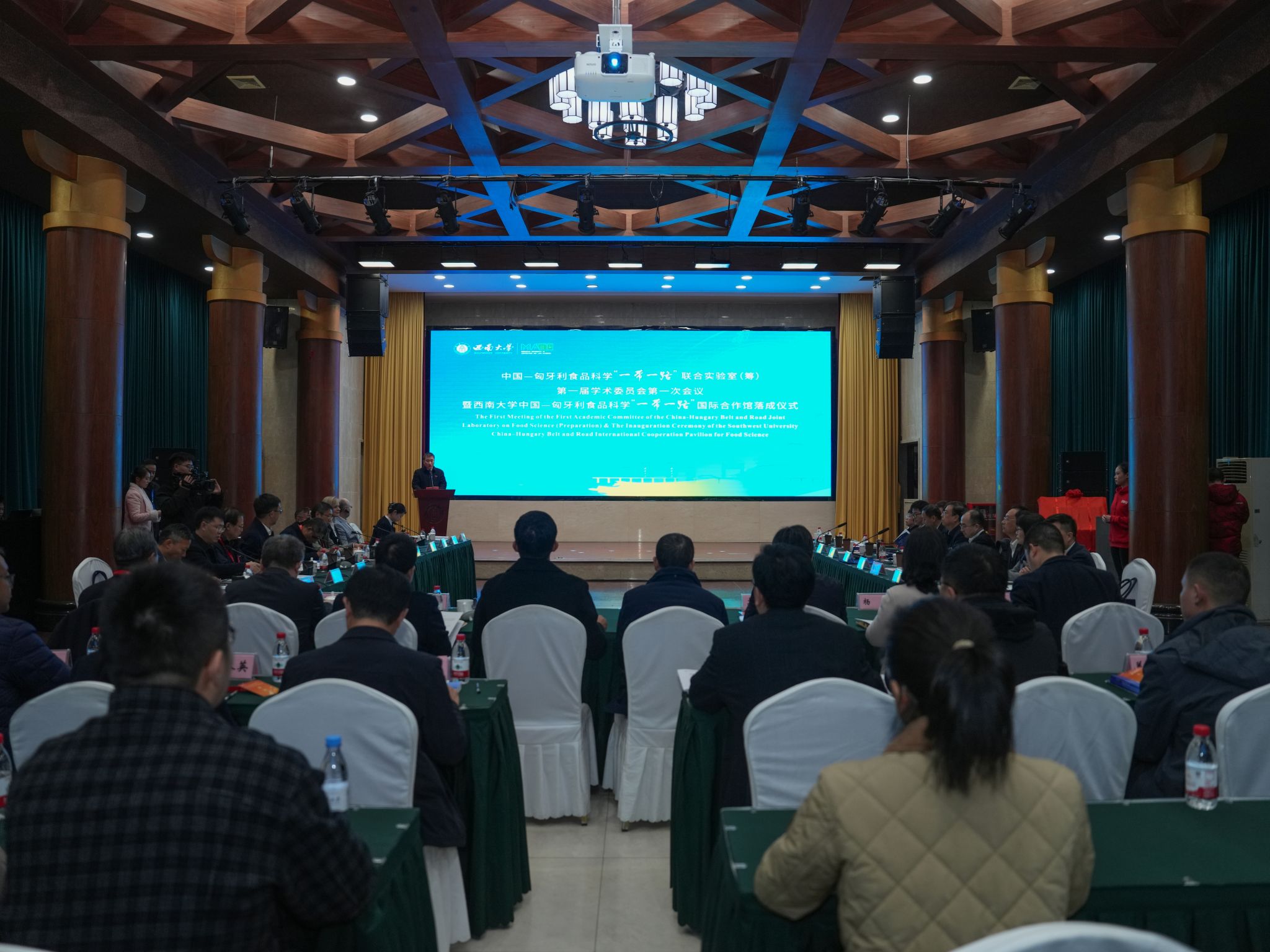12月15日,中国—匈牙利食品科学“一带一路”联合实验室(筹)第一届学术委员会第一次会议暨Beat365中文官方网站中国—匈牙利食品科学“一带一路”国际合作馆落成仪式在学校举行。会议围绕中匈食品科学领域科技合作与交流,聚焦联合实验室(筹)建设与运行机制,系统推进双方在相关领域的协同创新与务实合作。来自重庆市有关部门、匈牙利驻重庆总领事馆、中国食品科学技术学会以及中匈双方高校、科研机构的领导与专家代表参加活动。
