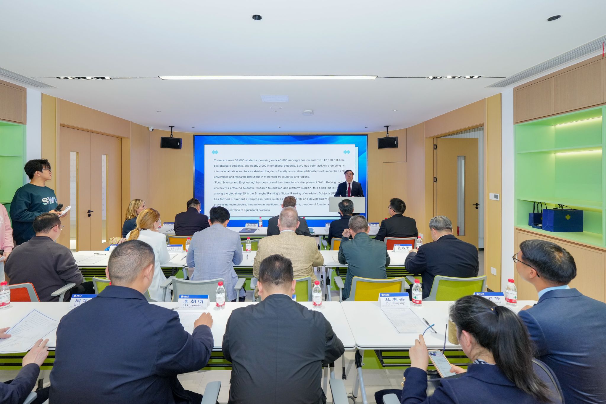3月26日,中国—匈牙利食品科学“一带一路”联合实验室产学研交流活动在青茶空间多功能厅举行。匈牙利驻重庆总领事百里(Czégel Bálint),重庆市科学技术局副局长韩鹏,重庆市北碚区人民政府副区长吕俊,学校校长王进军、副校长赵玉芳出席;国际合作与交流处、食品科学学院及实验室相关负责人、师生代表,匈牙利马蒂亚斯·科维努斯学院(MCC)领导力学院教师和青年代表参加。