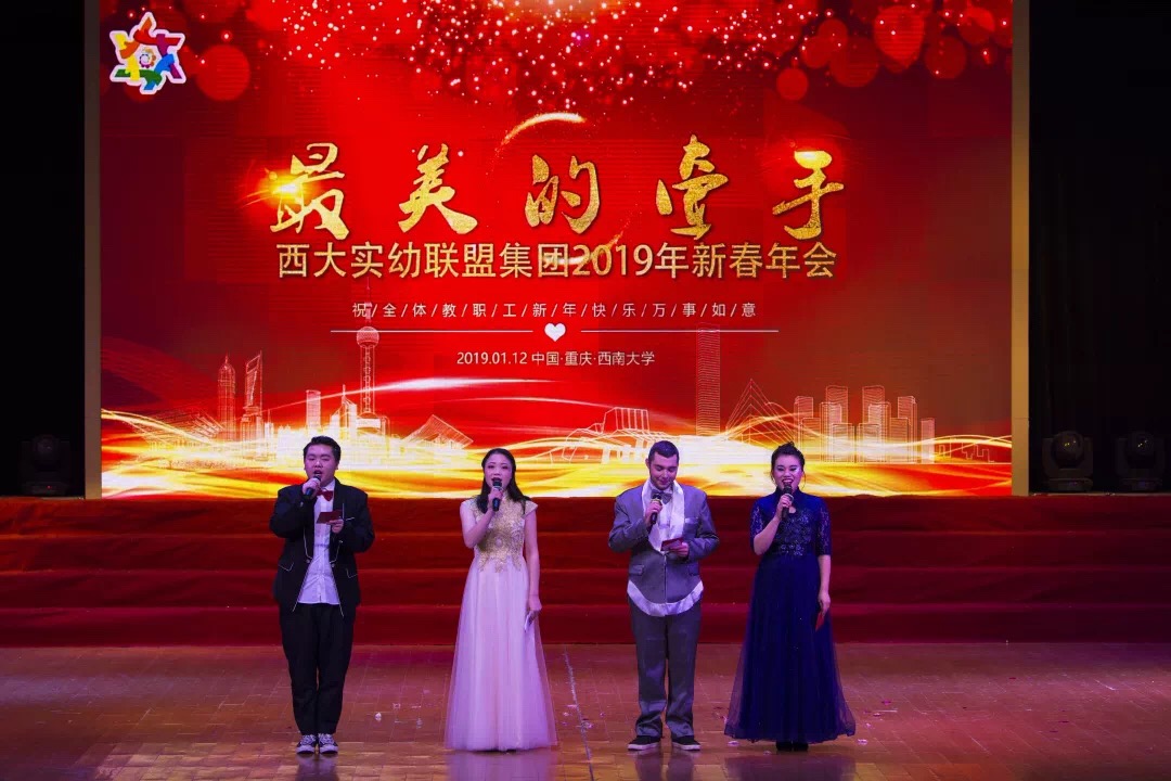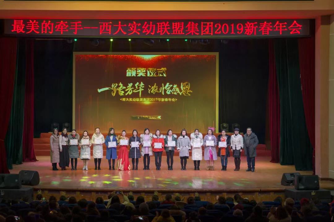 年会由Beat365中文官方网站实验幼儿园统筹策划,各姊妹园广泛参与,精心准备。节目热闹、喜庆、温馨,精彩纷呈,舞蹈、哑剧、快板等形式多样的节目无不展现幼师风采,体现了集团和谐向上的美好形象。同时,年会还颁发了西大实幼联盟集团首届先进个人和优秀成果荣誉证书。