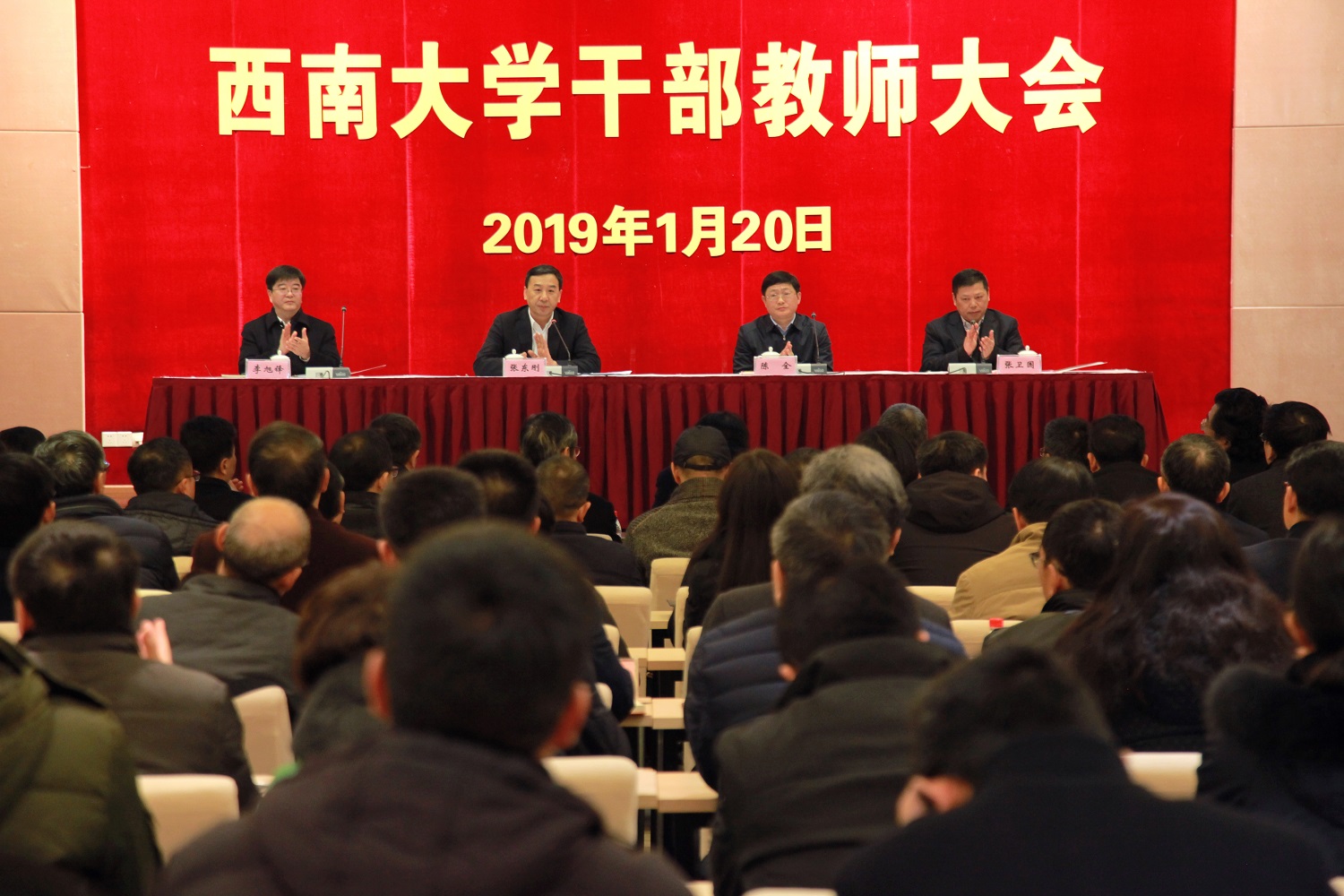 1月20日下午,学校召开干部教师大会,教育部人事司司长张东刚宣布教育部党组决定:李旭锋同志任Beat365中文官方网站党委委员、常委、书记。舒立春同志因工作调动免去Beat365中文官方网站党委常委、书记职务,徐晓黎同志因年龄原因免去Beat365中文官方网站党委常委、副书记职务。重庆市委组织部副部长陈全出席大会。校长张卫国主持大会。