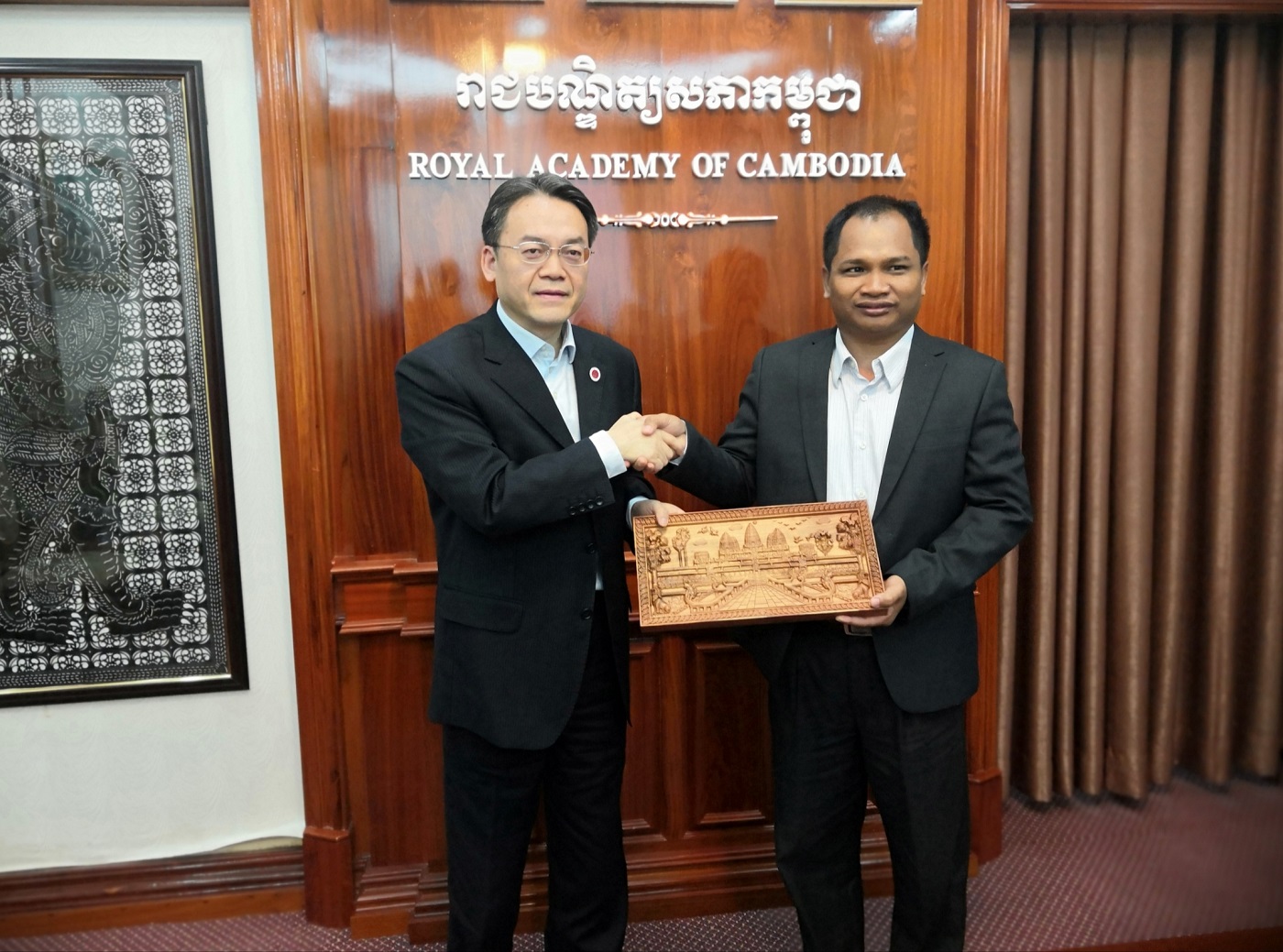 代表团还专程访问了柬埔寨皇家科学院和教育部。皇家科学院作为柬政府的重要咨询研究机构,隶属于柬埔寨内阁事务部,下设6个研究所,主要培养硕士、博士研究生。经过商谈,双方对派遣柬方官员和学生来华进行短期汉语研修,加强在农业、动物、植物、家蚕等领域的科研合作,以及探索研究生联合培养、共建柬埔寨国家公园等事宜,达成了诸多共识,并探讨了在柬埔寨驻重庆总领事馆的支持下,共建柬埔寨研究中心的可行性。代表团拜访了柬埔寨教育部负责教育审计的官员。在听取了学校与泰国教育部高教委以及越南教育管理学院合作范例的情况介绍后,柬方官员表达了对促成双方合作的信心,并就官员短期培训项目和境外合作办学提出中肯建议。