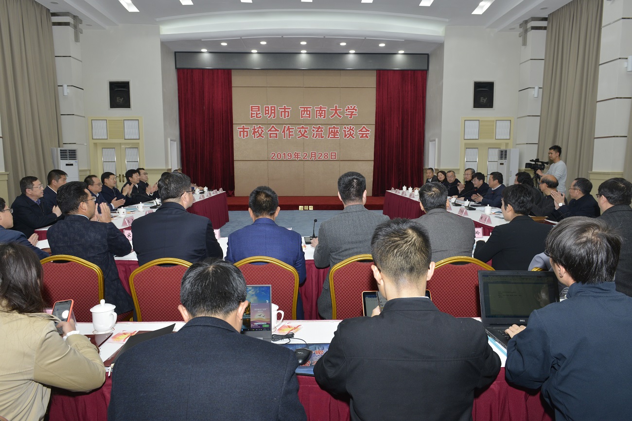 据悉,参加座谈会的还有昆明市市委办公室、接待办、扶贫办、工业和信息化局、科技局、农业农村局、市投资促进局、教育体育局、商务局、官渡区等有关部门、区县的负责同志,Beat365中文官方网站党委办公室、校长办公室、社会科学处、科学技术处、招生就业处、校地合作处、基础教育投资管理有限公司主要负责同志和专家代表等。