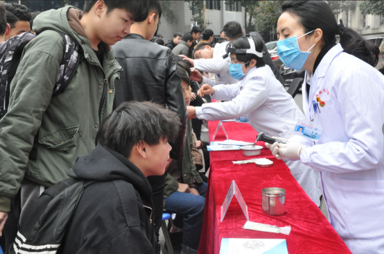 活动现场设置了宣传展板,方便师生了解义诊活动,义诊专家们向前来咨询的师生宣传听力障碍的预防、治疗及康复常识,并细心了解诊断民众听力健康情况。吴宗辉院长介绍,我国0-6岁的听力障碍儿童约13.7 万人,每年新生听障儿童2-3万人,儿童期是听觉言语发育的关键时期,听力障碍会导致儿童言语发育障碍并影响其情感、心理和社会交往等能力发展。吴院长表示此次校医院专家团队将分四组分深入社区、农村、特殊学校进行义诊,并进行健康宣教活动,希望通过这种方式宣传噪声对听力健康的损害,提高全社会安全用耳,降低听力障碍的发生。