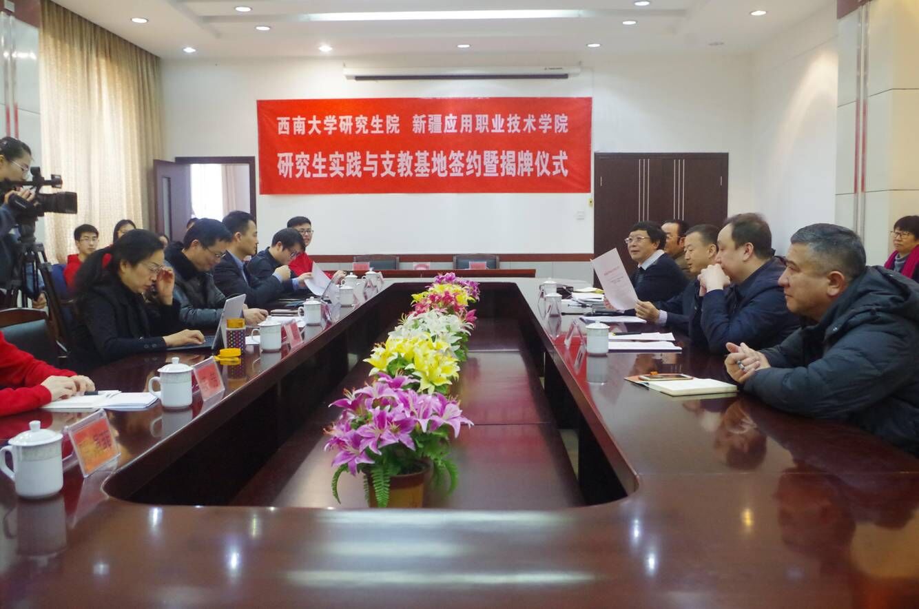 长期以来,学校坚持在培养高精尖学术型人才的同时,着力培养能够适应生产、建设、管理、服务第一线需要的高素质人才,尤其注重培养研究生的吃苦耐劳和艰苦奋斗精神。开辟新疆应职院研究生实践与支教基地是培养和提高学校研究生劳动素质和职业能力的重要举措,有助于培养他们正确的劳动观、价值观、成才观和社会责任感。据悉,两校将进一步加强沟通交流,全力做好支教研究生的管理服务工作,为支教研究生营造良好的生活和工作环境,为他们成长成才、施展才华创造良好条件。