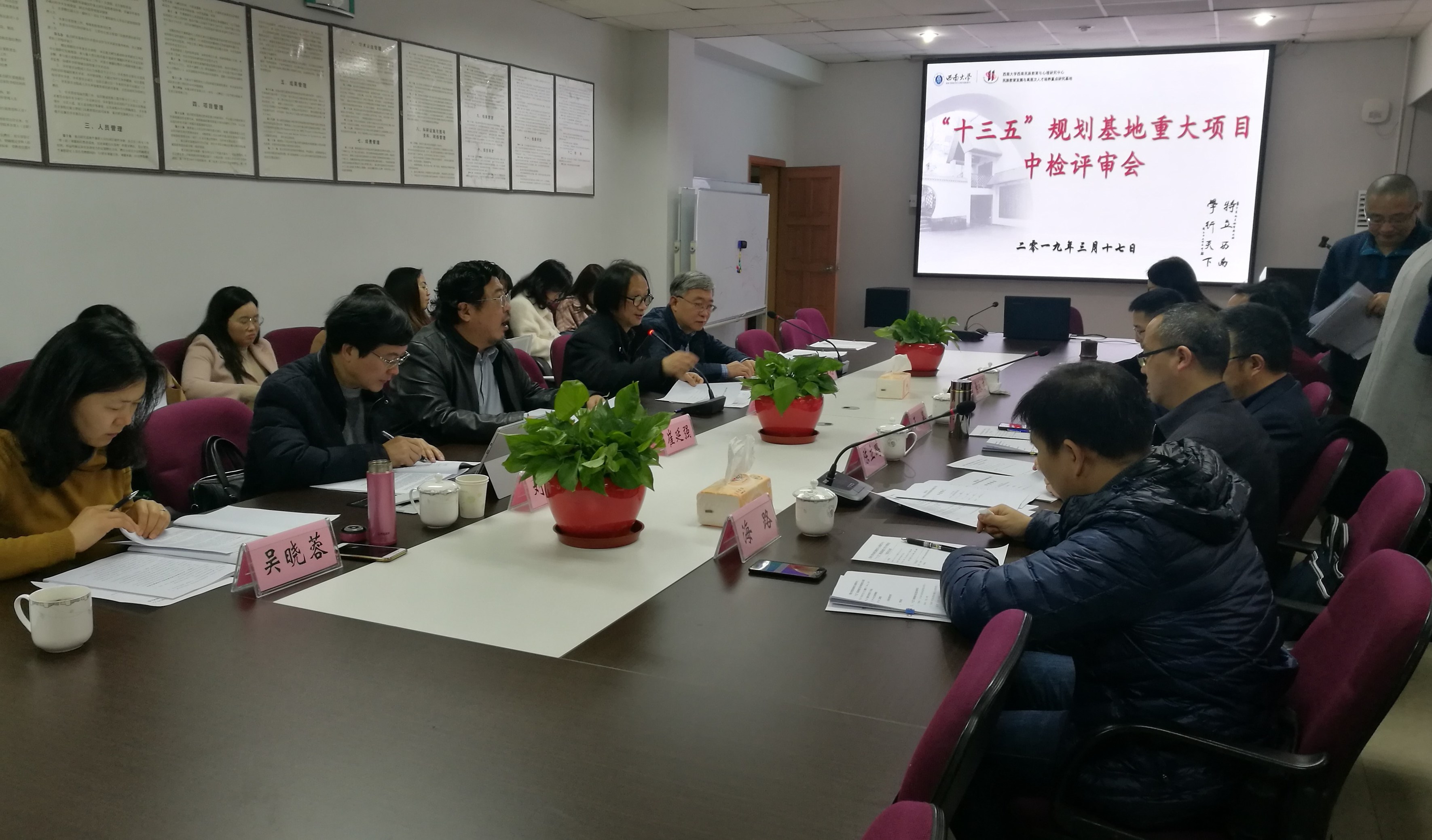 接受中期检查的项目是服务国家民族教育发展战略需要、围绕“十三五”总体规划主攻方向,“以‘互联网+’促进西南民族地区生态与科教特色发展研究”开展的系列重大研究项目,共计五项:张诗亚教授主持的“‘互联网+’汉字字源学习促进西南民族华夏认同研究”、赵玉芳教授主持的“‘互联网+’时代西南少数民族心理融合与认同建构研究”、倪胜利教授主持的“‘互联网+’背景下西南地区跨境民族教育发展研究”、孙振东教授主持的“‘互联网+’时代民族地区特色教育理论与实践模式研究”,以及廖伯琴教授主持的“基于‘互联网+’的民族地区科学普及研究”。