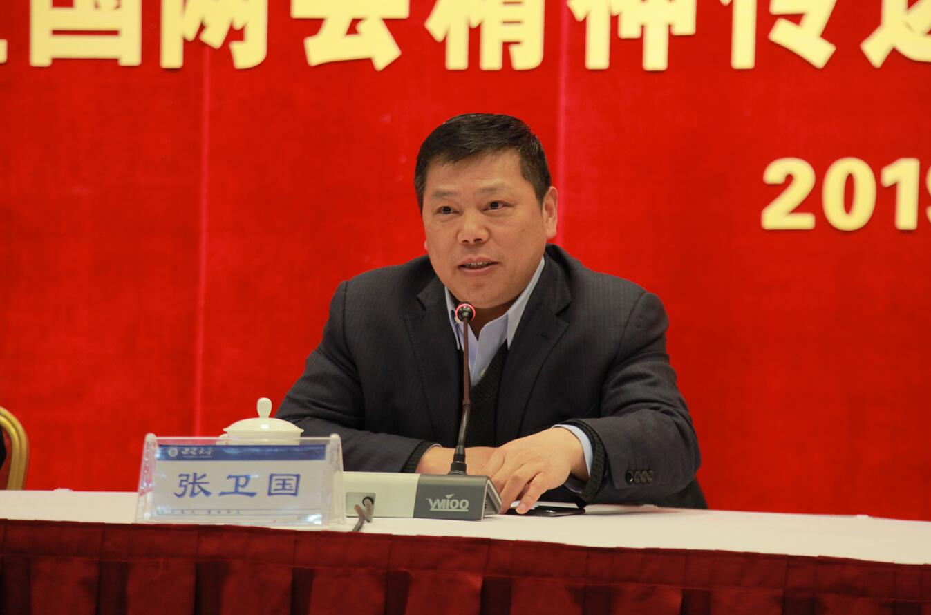 校长、党委副书记张卫国传达了习近平总书记两会期间重要讲话精神。两会期间,3月4日到12日,9天时间,习近平总书记六到团组,同代表、委员共商国是。总书记语重情长,惠及百姓民生;言之切切,汇聚人心民意;谆谆嘱托,描绘绿水青山。这些暖心话语和难忘瞬间既饱含着习近平对人民的真挚感情,同时也凝聚着大国领袖的治国智慧,不仅体现了习近平对各地区各行业工作的部署,也折射出他对党和国家工作全局的谋划和思考。张校长主要从六个方面进行了传达:一是坚定文化自信把握时代脉搏聆听时代声音,坚持以精品奉献人民用明德引领风尚;二是保持加强生态文明建设的战略定力,守护好祖国北疆这道亮丽风景线;三是脱贫攻坚不要搞虚假政绩;四是乡村振兴的“六要”;五是营造良好发展环境,加强对台工作,确保革命老区脱贫奔小康;六是打好我军建设发展“十三五”规划落实攻坚战,确保如期完成国防和军队建设目标任务。
