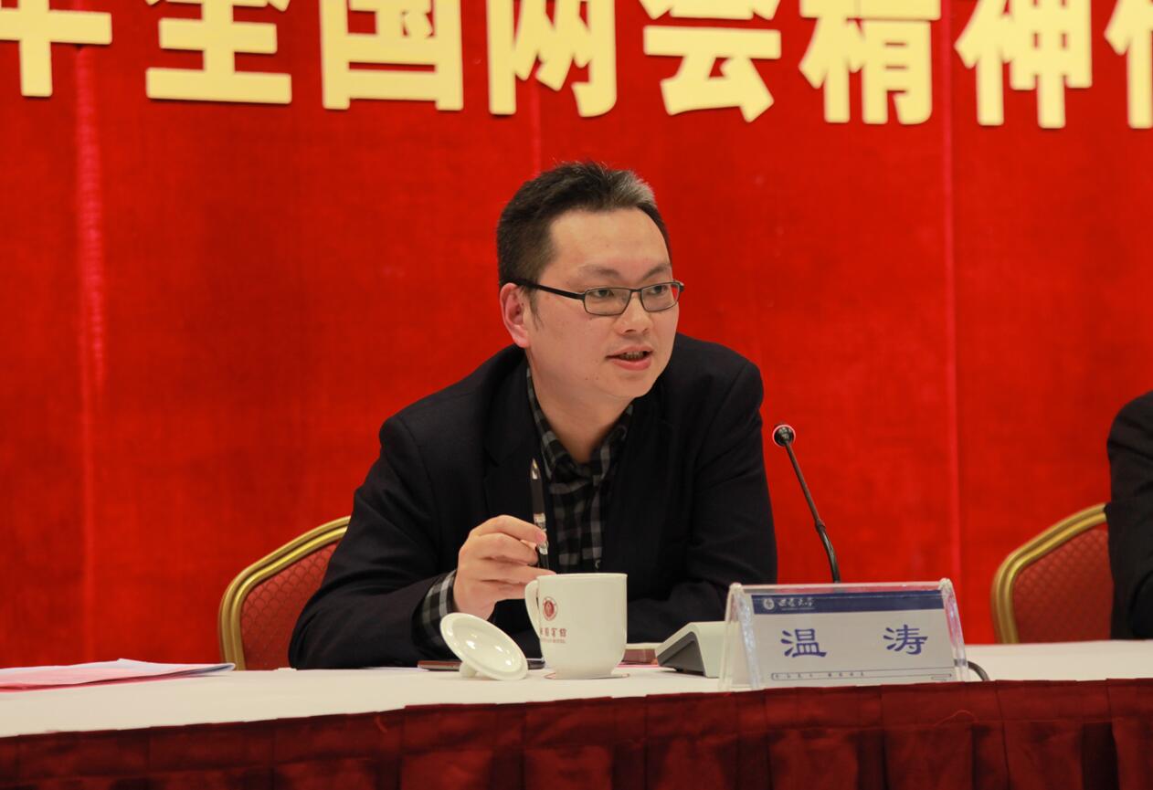 全国政协委员、副校长温涛教授重点围绕本次全国政协会议经济方面的相关情况作了介绍,回顾了2018年经济发展状况,提出了2019年经济发展的美好目标,围绕就业、政策支持、职业教育、高校科研经费等问题作了分享。