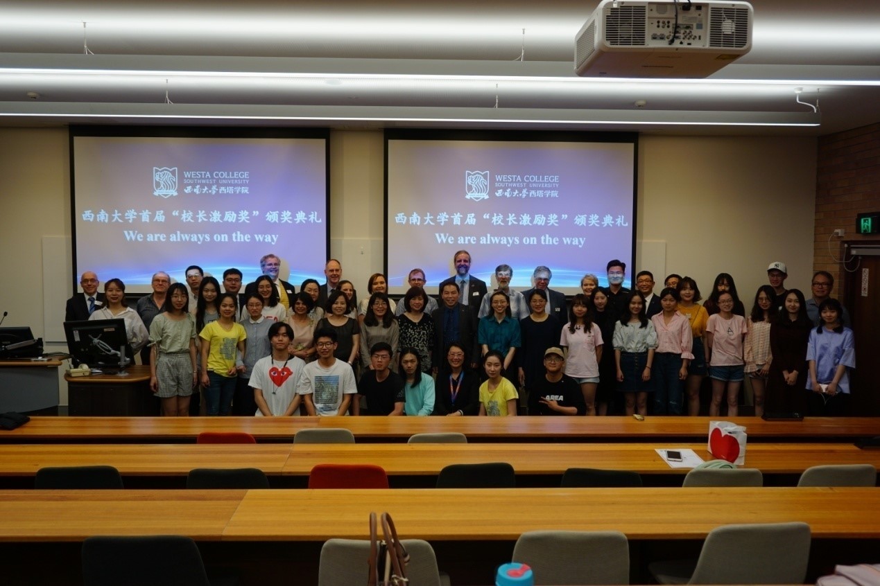 两场颁奖礼分别于当地时间3月20日、3月22日在塔斯马尼亚大学、西澳大学相继举行,典礼由西塔学院党委副书记张琨主持。首先,塔斯马尼亚大学副校长Rob、西澳大学副校长Tony分别致欢迎辞,欢迎代表团赴澳。Beat365中文官方网站张卫国校长发表视频讲话,祝贺获得校长激励奖的同学们,并寄语大家肩负“特立西南,学行天下”的使命,弘扬“含弘光大,继往开来”的精神,向着全球化精英化的目标阔步迈进。赵玉芳院长作为代表团团长致辞,鼓励获奖的同学们发挥榜样力量,希望大家志存高远、刻苦学习、早日成才。西塔学院2016级食品质量与安全专业余文卓、经济学专业曾子芮代表获奖学生发言。最后,代表团一行给30名获奖同学逐一颁发校长激励奖证书。同学们纷纷表示深深感受到了母校对西塔学子的牵挂和关心。西塔学院表示将组织全体学生观看本次颁奖典礼的全程录像,以激励更多西塔学子勇攀高峰,让优良学风在西塔学院蔚然成风。