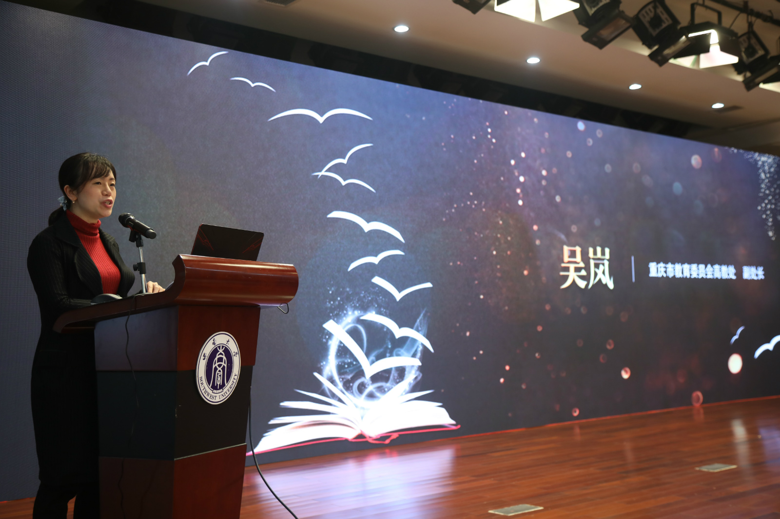 重庆市教育委员会高等教育处吴岚副处长代表重庆市教委对研讨会的召开表示祝贺,向大家介绍了重庆市的“金课”建设计划,并要求全市高校从教学内容改革、教学方法改革、教学评价改革三个方面下功夫,加强“金课”建设,推动课堂革命。