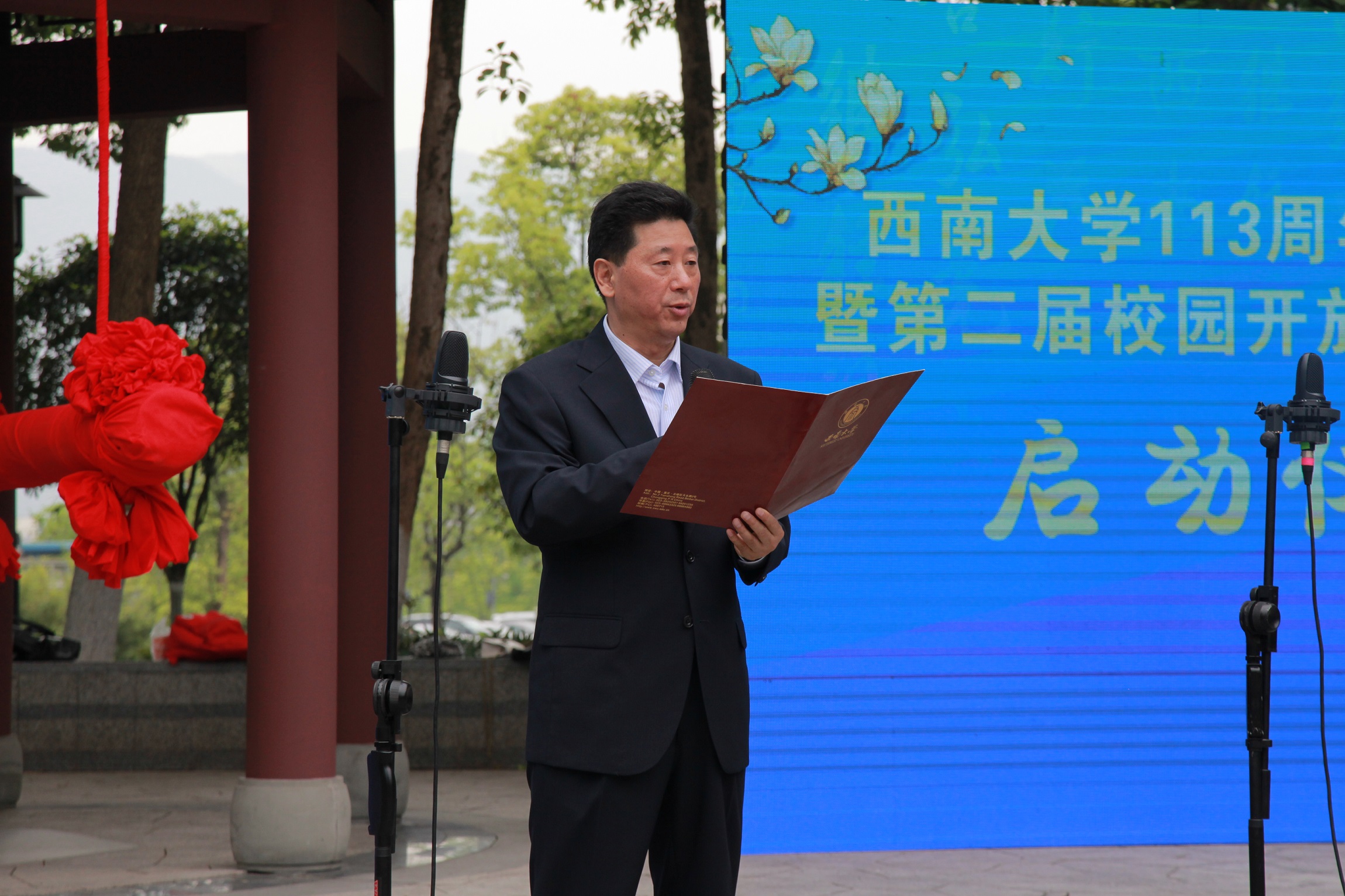 Beat365中文官方网站副校长靳玉乐主持启动仪式。靳校长介绍,此次活动旨在敞开怀抱,向新老朋友充分展示Beat365中文官方网站在办学条件、学科特色、师资力量、人才培养等方面的发展成就,弘扬Beat365中文官方网站“含弘光大,继往开来”之校训、“特立西南,学行天下”之大学精神,晒出Beat365中文官方网站这所百年学府传统悠久的历史文化和风光旖旎的校园春景。