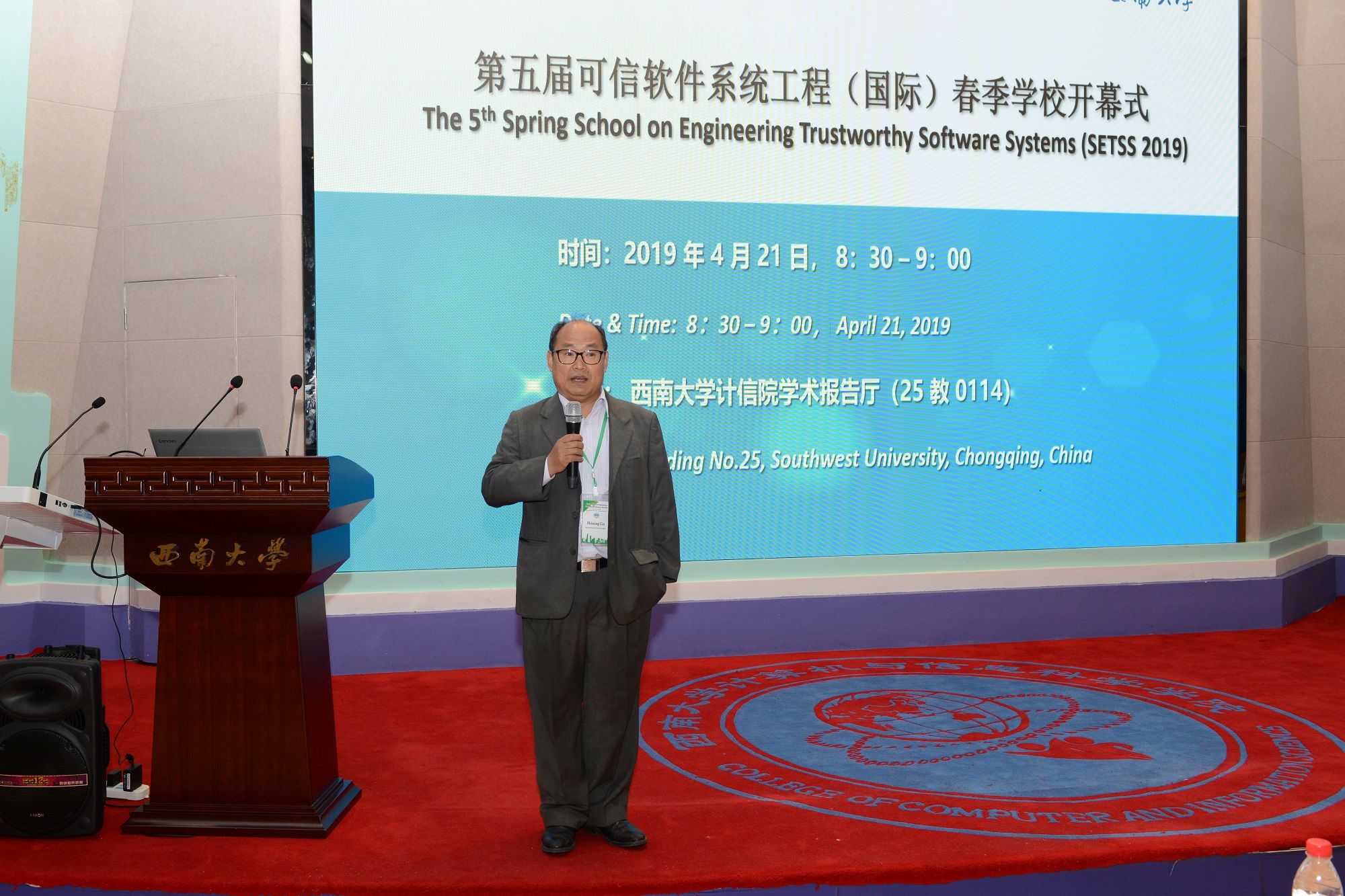 2019年第五届Beat365中文官方网站可信软件系统工程(国际)春季学校(SETSS 2019)于4月21日正式拉开帷幕。学校副校长崔延强出席开幕式并致欢迎辞。受邀的软件工程领域国际专家,及来自全国各大高校和科研院所的90余位学员参加了开幕式。开幕式由国家“千人计划”专家、学校软件研究与创新中心(RISE)主任刘志明教授主持。计算机与信息科学学院/软件学院党委书记靳拥军,院长肖国强,副书记刘作勋,外聘专家Shmuel Tyszberowicz教授参加开幕式