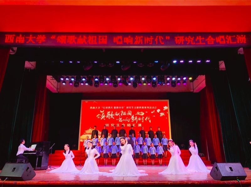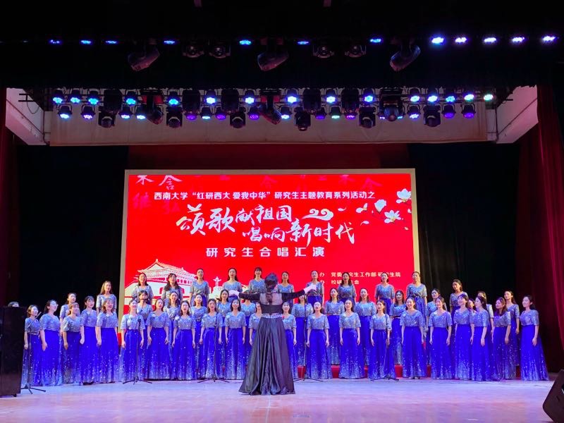 为贯彻落实习近平新时代中国特色社会主义思想和全国教育大会精神,庆祝新中国成立70周年和纪念五四运动100周年,4月27日下午,由党委研究生工作部、研究生院主办的“颂歌献祖国 唱响新时代”研究生合唱汇演在光大礼堂举行。党委研究生工作部、研究生院以及部分二级培养单位负责人出席本次汇演活动,5名校内外合唱及声乐领域专业人士担任评委。
