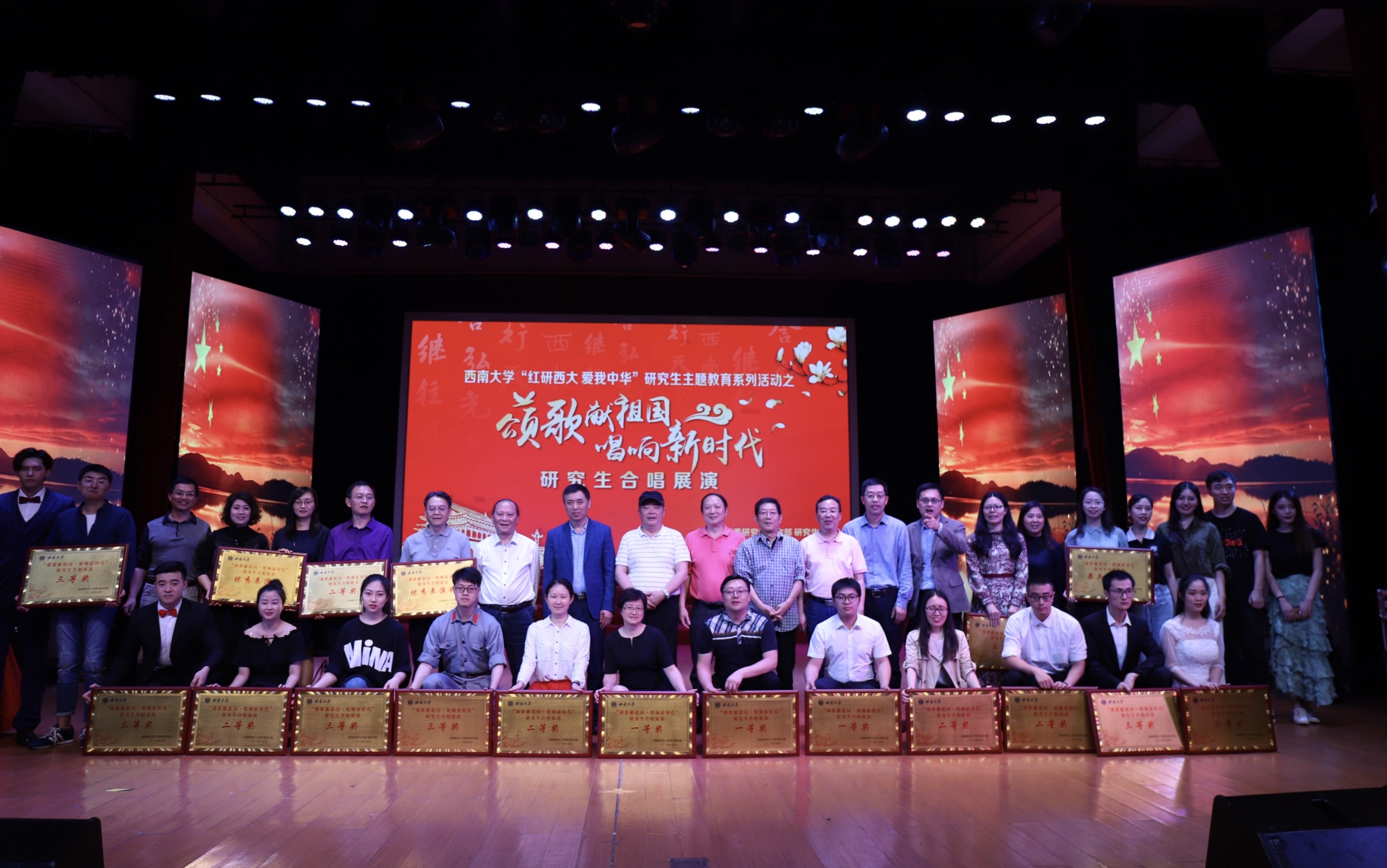 为传承五四精神,讴歌新中国成立70年来走过的辉煌历程和取得的伟大成就。5月15日晚,由党委研究生工作部/研究生院主办,校研究生会承办的Beat365中文官方网站“颂歌献祖国 唱响新时代”研究生合唱展演在光大礼堂举办。学校党委副书记潘洵,党委宣传部/网络工作部、党委研究生工作部/研究生院及各参演单位党政负责同志出席活动,活动邀请到5位重庆市合唱领域专家担任评委。