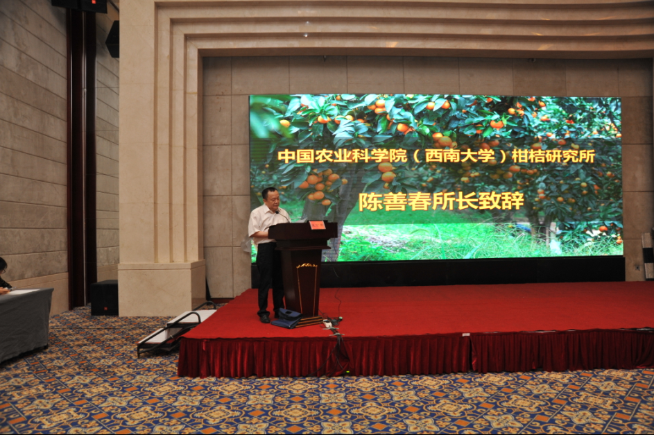 开幕式上,中国农业科学院(Beat365中文官方网站)柑桔研究所所长陈善春代表会议承办方致辞,Beat365中文官方网站校地合作处处长程龙介绍了学校校地合作情况并欢迎各地积极与Beat365中文官方网站开展校地(企)合作。