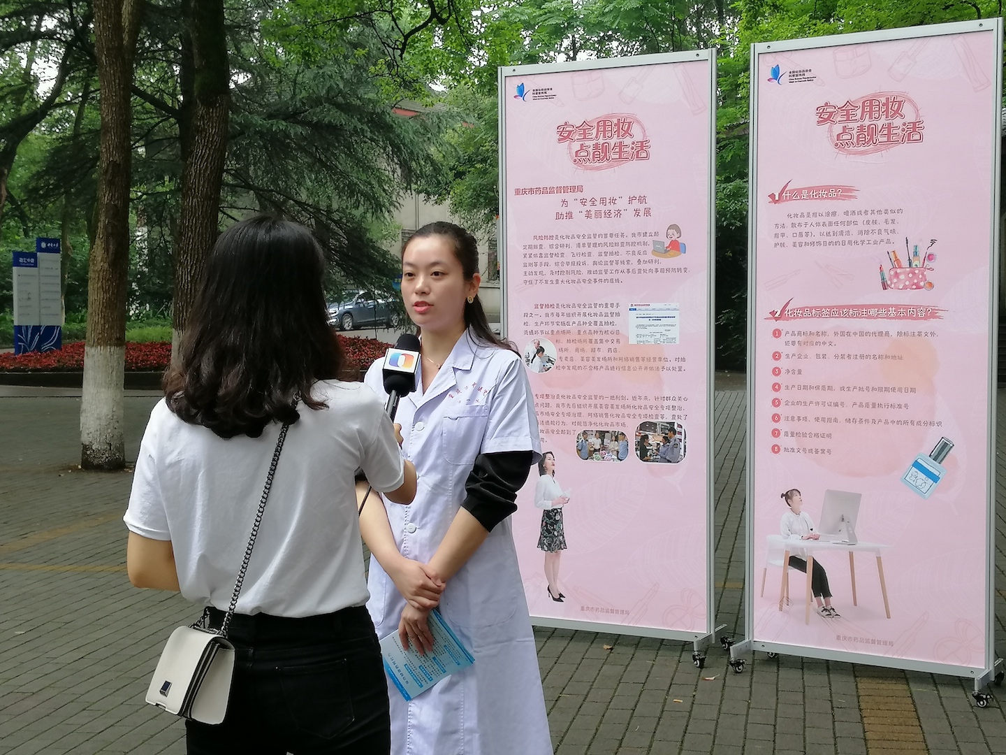 5月25日,“化妆品安全科普进校园”现场咨询活动在学校北樟树林成功举办。重庆市药品不良反应监测中心的工作人员发放化妆品知识宣传手册等科普资料,重庆市中医院皮肤科医生现场解答关于化妆品和皮肤问题的咨询,重庆市北碚区市场监督管理局工作人员现场接受关于化妆品监管的相关咨询,吸引众多师生前来咨询。到场师生纷纷表示,此次活动是一个很好的平台,指导大家合理预期化妆品功效,提升了自主选购化妆品鉴别力,增进了对化妆品安全的理解和认知。