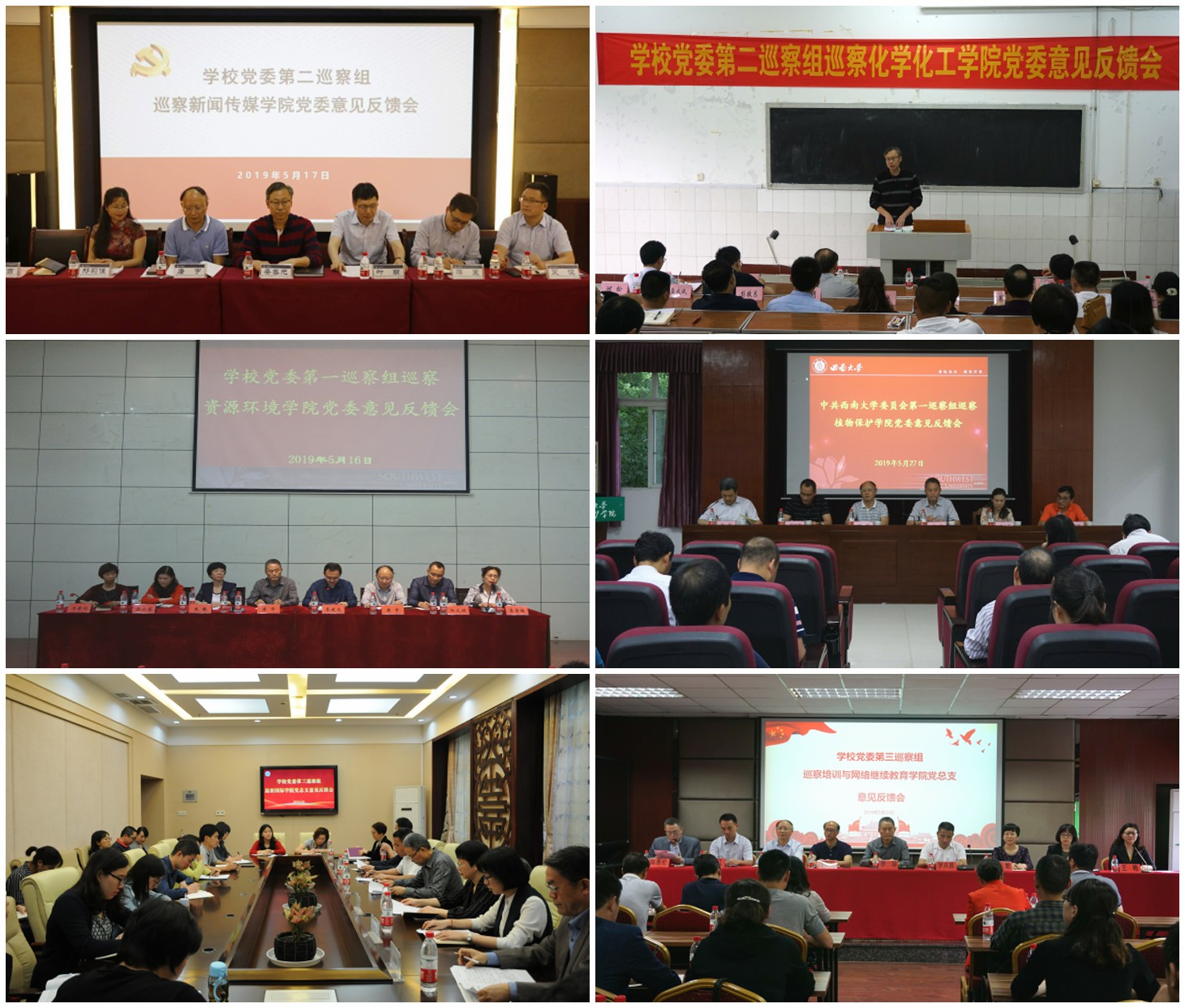 根据学校党委校内巡察工作的统一部署,5月16日至27日,党委巡察组巡察资源环境学院党委、新闻传媒学院党委、培训与网络继续教育学院党总支、国际学院党总支、化学化工学院党委、植物保护学院党委意见反馈会先后召开。校党委副书记、巡察工作领导小组副组长安春元,校党委副书记、纪委书记、巡察工作领导小组副组长李华分别出席反馈会,传达了学校党委对巡察整改工作的要求。第一巡察组组长李建光、第二巡察组组长叶荫、第三巡察组组长罗庆昌分别反馈了巡察意见,被巡察单位党组织书记作表态发言。反馈会前,巡察组向被巡察单位领导班子进行情况反馈和沟通交流。