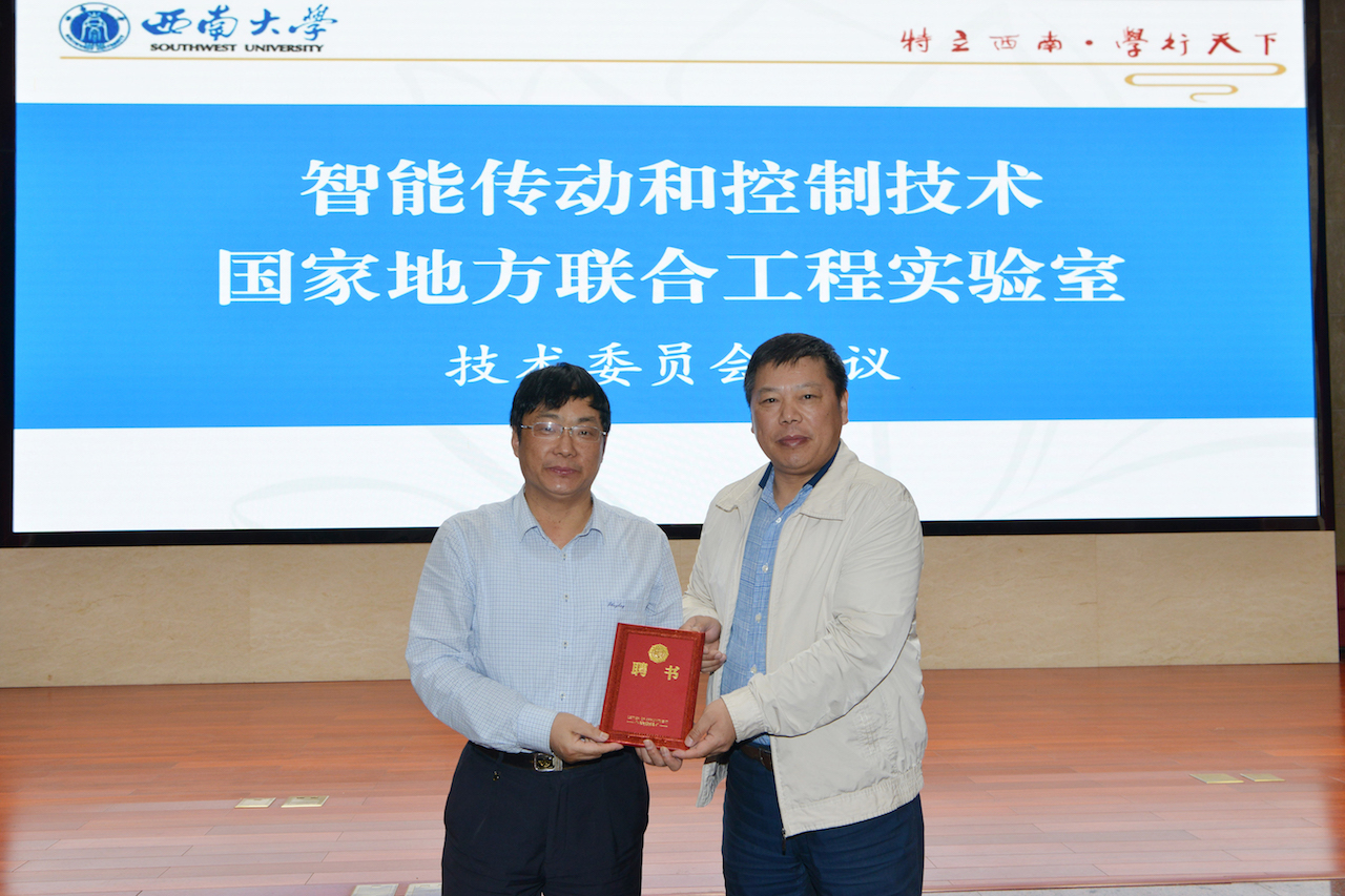 李华副书记宣读了Beat365中文官方网站关于聘任智能传动和控制技术国家地方联合工程实验室(重庆)第一届技术委员会的通知(西校〔2019〕261号),聘请中共第十九届中央委员会候补委员、中国科学院院士李应红担任实验室技术委员会主任,中国科学院院士、清华大学教授欧阳明高和Beat365中文官方网站人工智能学院教授段书凯担任副主任,同时聘请美国医学与生物工程院院士、欧洲科学院院士李长明,中国兵器工业集团研究员毛明,重庆军工产业集团总经理邓华民、西安电子科技大学王泉教授,浙江大学付新教授,香港科技大学赵天寿教授,西安交通大学陈雪峰教授,武汉理工大学华林教授,华中科技大学李锡文教授,电子科技大学胡剑浩教授,庆铃汽车集团有限公司副总经理徐松,我校薛荣生研究员、叶进教授担任技术委员会委员。张校长为技术委员会成员颁发聘书。