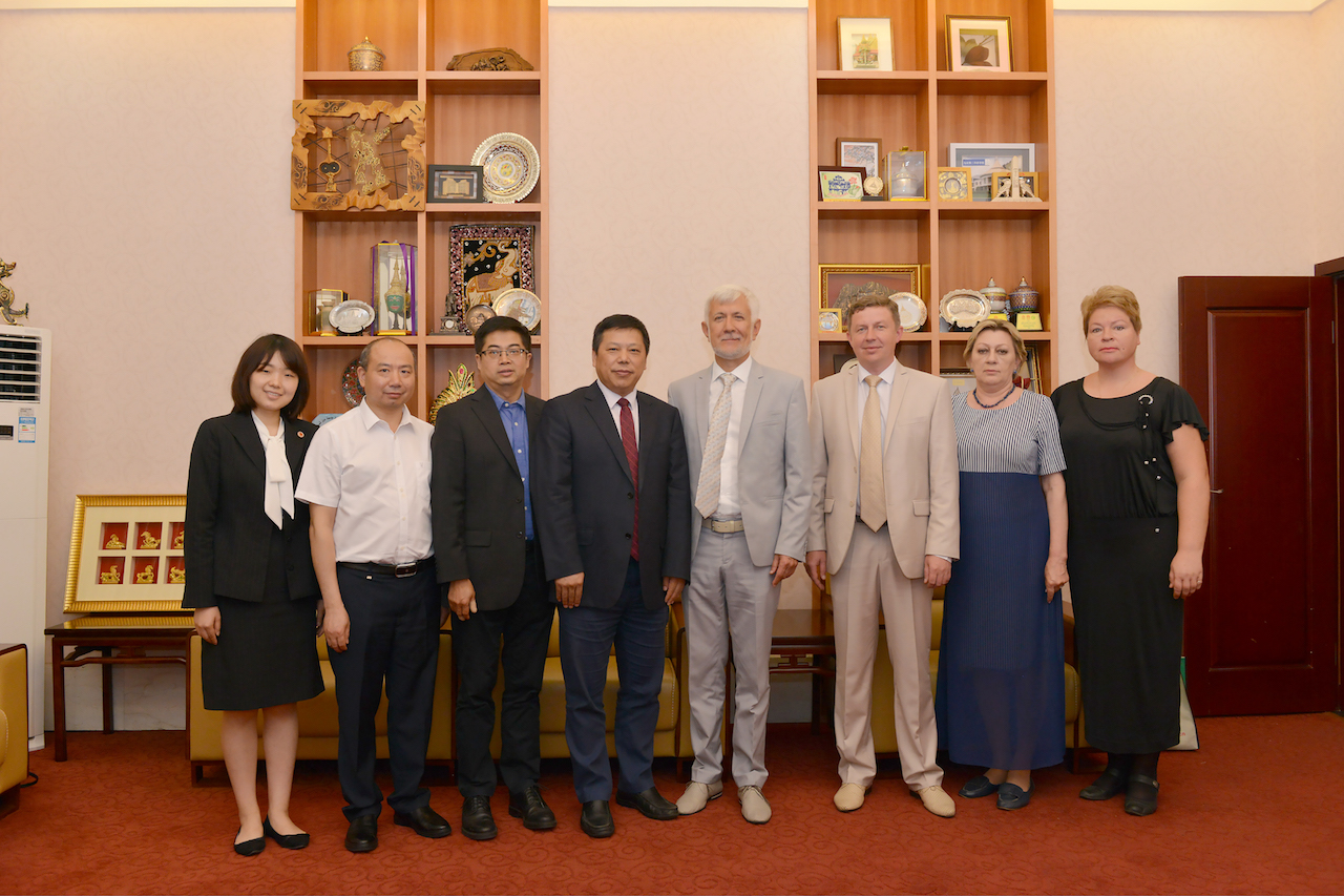 6月14日,俄罗斯雅罗斯拉夫尔国立师范大学米哈伊尔·格鲁兹杰夫校长、亚历山大·霍德列夫副校长一行来校访问,张卫国校长会见客人。
