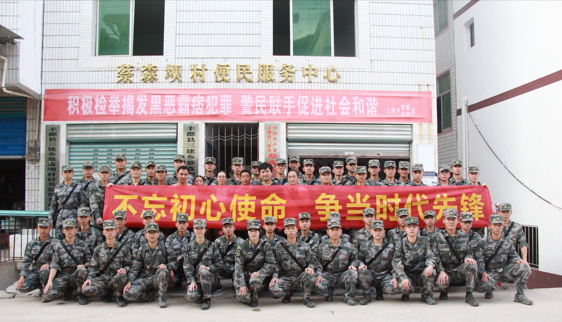 国防生选拔培养办公室党总支组织全体国防生党员、2019届全体国防生近60人,在组织员严世趁老师的带领下,来到丰都县三建乡蔡森坝村,开展“感受祖国发展成就 坚定不移跟党走”主题教育实践活动。以深入了解党的精准扶贫政策、切实感受祖国发展成就、亲身参与农活劳动、力所能及帮助困难农户。