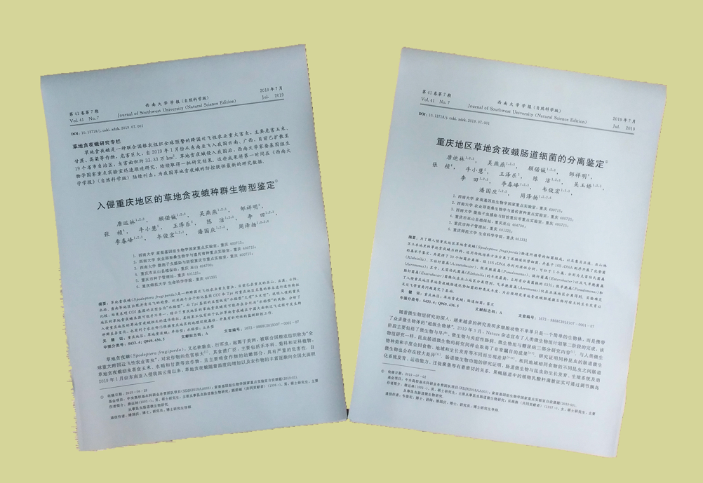草地贪夜蛾是一种联合国粮农组织全球预警的重大洲际迁飞性农业害虫,自2019年1月从东南亚侵入我国云南、广西以来,已经向北迁飞蔓延了19个省市自治区,主要危害玉米、高粱等大宗粮食作物,危害巨大。该虫快速迁徙引起了国务院的重视,近期农业农村部专门召开了草地贪夜蛾的防控会议,国内许多科研院所也纷纷投入人财物对该害虫进行研究。自今年5月初草地贪夜蛾在重庆发现以来,学校家蚕基因组生物学国家重点实验室潘国庆研究员课题组迅速行动,在重庆市各级农业部门的大力配合下,第一时间从各区县收集虫样,快速开展了草地贪夜蛾生物型和肠道菌群的研究,希望能为我国草地贪夜蛾的综合防控提供第一手的详实数据。《Beat365中文官方网站学报(自科版)》关注学术热点研究,积极服务于学校重点科学研究,与该课题组紧密合作,及时调整出刊计划,组织精干编辑认真、高效完成了稿件的评审、编辑工作,仅仅用一周时间,课题组两篇关于草地贪夜蛾的最新研究成果《入侵重庆地区的草地贪夜蛾种群生物型鉴定》、《重庆地区草地贪夜蛾肠道细菌的分离鉴定》通过该学报于7月4日在中国知网优先发表,及时发布了国家急需的草地贪夜蛾相关研究报告,为治理草地贪夜蛾提供了基础数据。