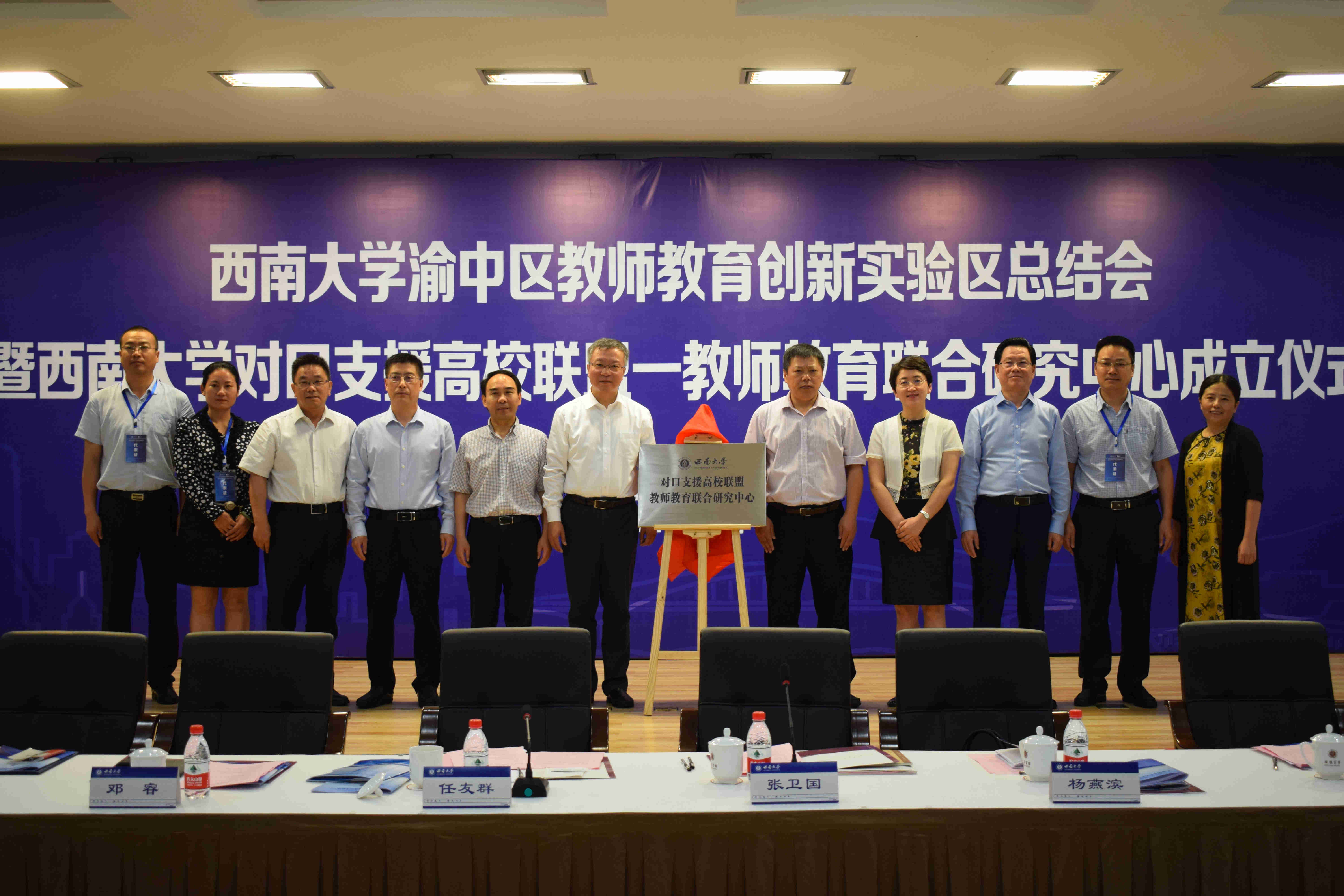 任友群司长一行同邓睿副主任、刘先海副巡视员、渝中区区委常委张远洪、渝中区教委主任唐点权等领导出席Beat365中文官方网站——重庆市渝中区人民政府共建教师教育创新试验区总结会暨Beat365中文官方网站对口支援高校联盟—教师教育联合研究中心成立仪式,观看了Beat365中文官方网站教师教育创新实验区建设专题片,听取了教师教育学院副院长张学斌关于实验区的建设总结汇报,刘先海副巡视员宣读了实验区建设专家评审意见。张卫国校长向渝中区“Beat365中文官方网站卓越教师工作站”授牌并向卓越教师培养导师颁发聘书,聘请渝中区10位优秀教师为学校卓越教师培养导师;张远洪常委向Beat365中文官方网站教师颁发聘书,聘请学校10位教师担任渝中区名师名校长培养导师。任友群司长和张卫国校长共同为“Beat365中文官方网站对口支援高校联盟—教师教育联合研究中心”揭牌。张远洪常委讲话指出,教师教育创新实验区建设为渝中教育提供了强有力的智力支持和人才保证,也为渝中教育实现高质量发展奠定了坚实的基础。希望Beat365中文官方网站和渝中区能够继续携手,在教师教育等各领域开展更加深入、广泛的合作,积极探索新路径、实施新策略,形成多边互动、互惠互利、合作共赢的良好局面,为努力办好人民满意的教育而共同努力。