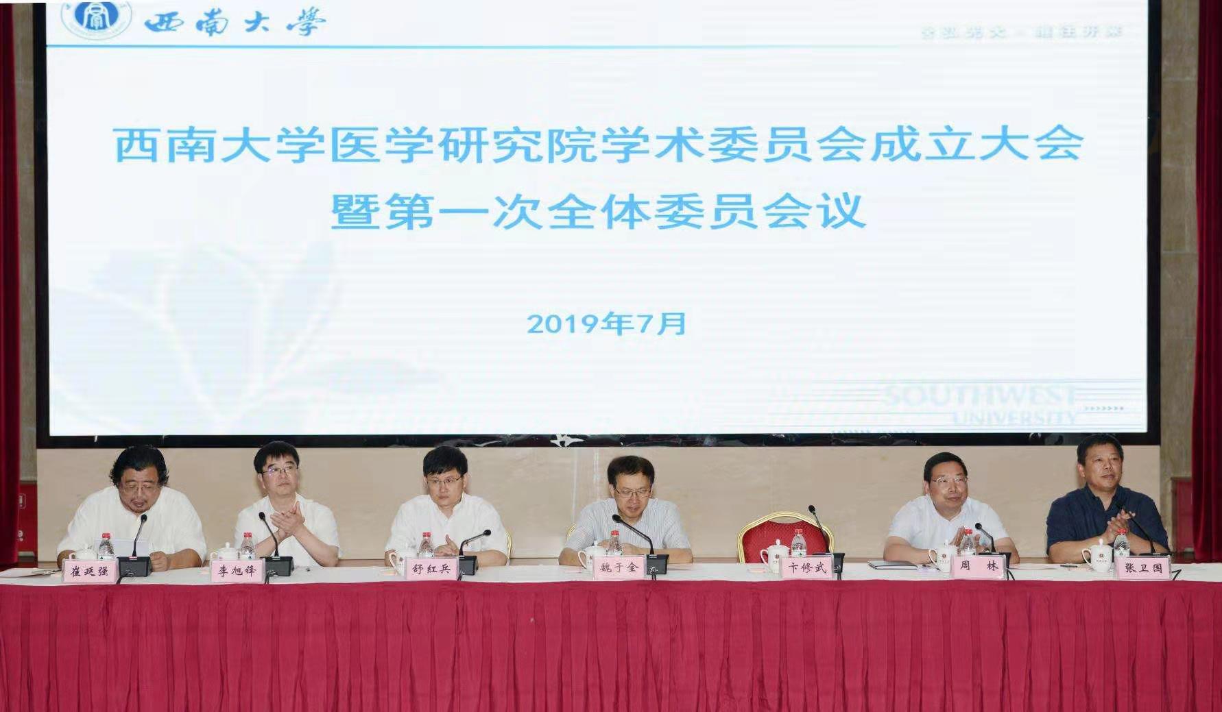 7月15日,学校召开医学研究院学术委员会成立大会暨第一次全体委员会会议。四川大学魏于全院士、武汉大学医学研究院院长舒红兵院士、陆军军医大学卞修武院士等学术委员会委员,重庆市卫健委周林副主任,学校党委书记李旭锋,校长张卫国,副校长崔延强,Beat365中文官方网站附属医院、重庆市第九人民医院,Beat365中文官方网站附属公卫医院、重庆市公共卫生医疗救治中心,Beat365中文官方网站附属心理医院、重庆市精神卫生中心的领导以及学校相关专家和职能部门负责人出席。学术委员会成立大会由崔延强副校长主持。