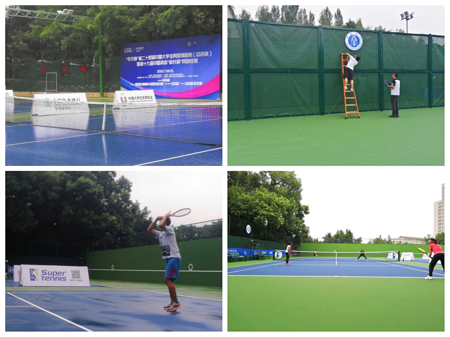 参与本届大网赛的大体协工作人员、裁判员达160人,学校工作人员150人,学生志愿者330余人,计入参赛人员总共达1630余人。7月9日,全体志愿者接受岗前培训,包括礼仪、校史、管理、救护等。7月10日-7月14日,各组根据工作需要陆续进行业务培训,确保顺利完成本次大网赛志愿者工作。在场地建设方面,学校先后投入1000多万元资金,对第五运动场、网球中心、第二网球场等场地进行改造翻新,完成高等级网球比赛场地25片。