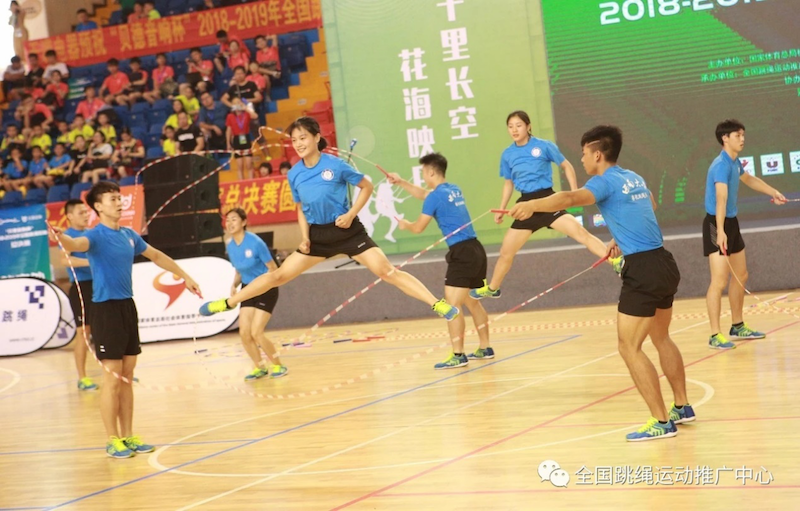 7月18日-22日,2018-2019年全国跳绳联赛总决赛在广州市花都区花都体育馆举行。共有来自安徽、北京、上海、四川、天津、新疆、云南、重庆等全国21个省、市、自治区的89个单位94支队伍1100余名运动员同场竞技,展开激烈角逐。