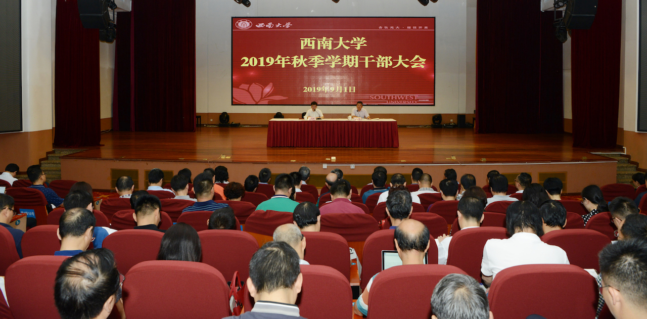 张卫国校长对照年初工作要点和春季学期工作计划,盘点了学校各项要点工作完成情况;解读了第三次党代会提出的工作目标和主要任务。张卫国校长代表党委和行政,对新学期重点工作进行了安排部署,指出要扎实开展“不忘初心、牢记使命”主题教育,学习宣传贯彻落实学校第三次党代会精神,围绕庆祝中华人民共和国成立70周年开展系列主题教育活动,深入推进高校思想政治理论课建设,加强意识形态工作,落实“党支部建设年”任务,深化组织机构改革,落实全面从严治党,深入抓好巡视整改,加强师德师风建设,完善“三全育人”格局,做好统战群团和离退休工作,优化学校内部治理,持续落实一流本科建设,深化创新创业教育改革,聚力推进一流学科建设,优化人才培养和科研环境,强化校地、校企、校际合作,推进基础设施建设,深度服务国家和重庆市脱贫攻坚。
