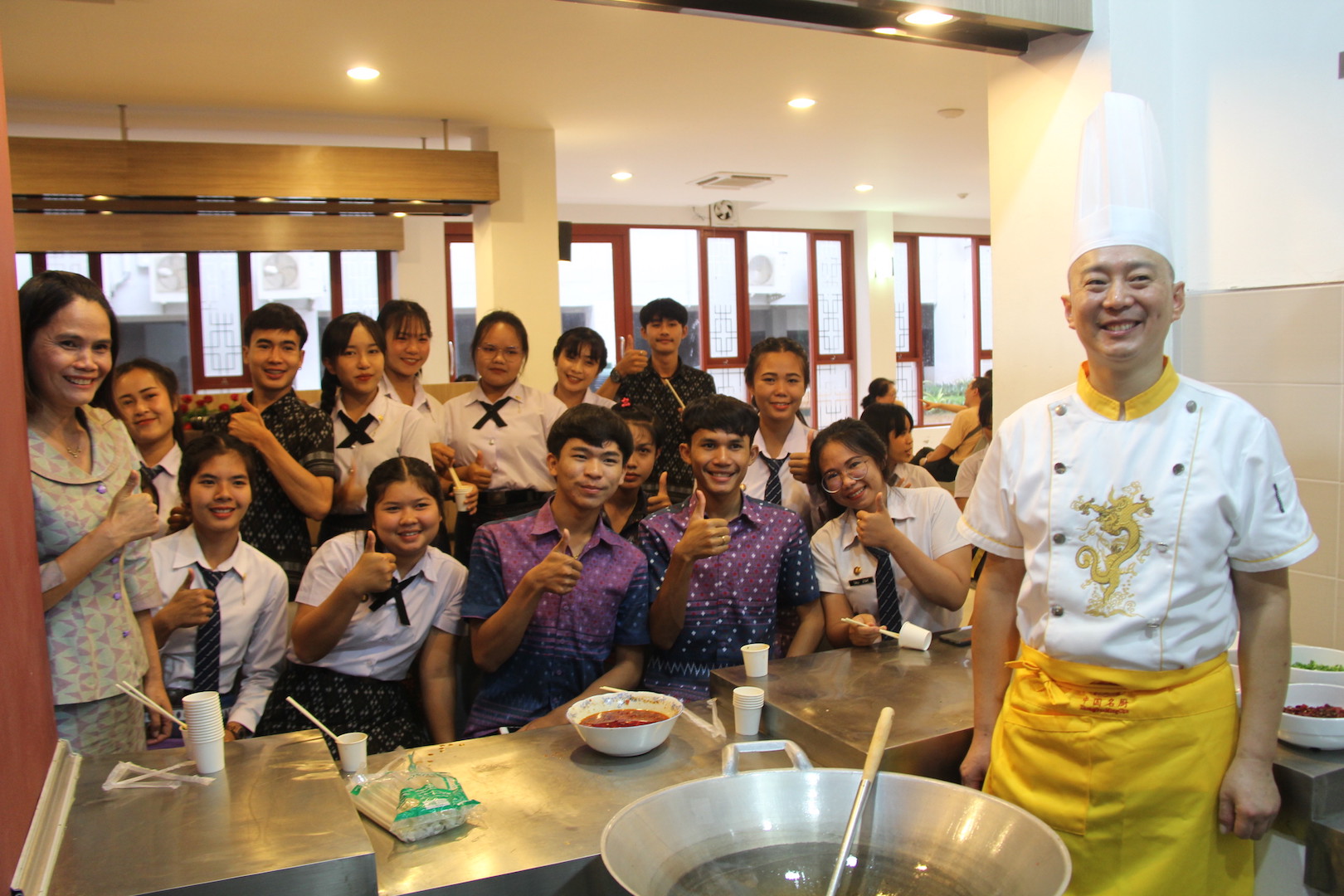 8月30日,“中国厨房”美食文化节暨Beat365中文官方网站泰北校友会揭牌仪式在泰国孔敬大学隆重开幕,桂园宾馆厨师团队受邀在美食文化节上一展厨艺,乐山钵钵鸡、糖醋排骨香气四溢,循香而来的嘉宾和师生在摊位前排起了长龙,品尝之后都赞不绝口。