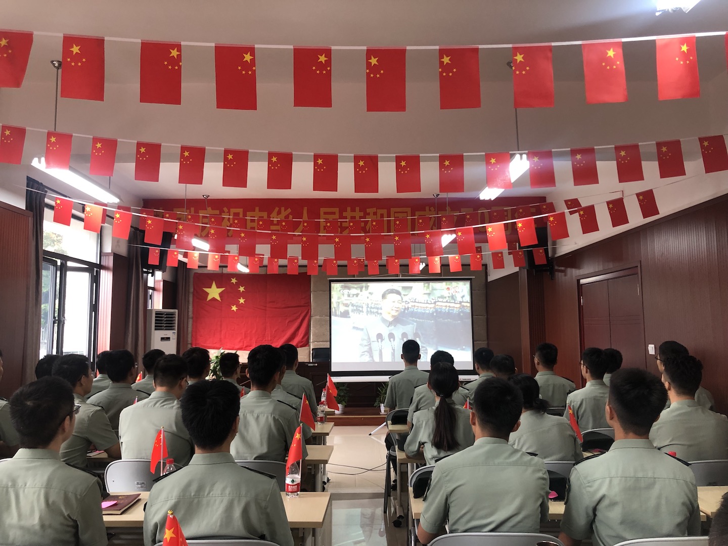 10月1日,中共中央、全国人大常委会、国务院、全国政协、中央军委在北京天安门广场隆重举行庆祝中华人民共和国成立70周年大会,中共中央总书记、国家主席、中央军委主席习近平发表重要讲话。为深入学习领会习近平总书记重要讲话精神,共庆新中国70华诞,学校组织师生员工集中收看庆祝大会直播并举行座谈。
