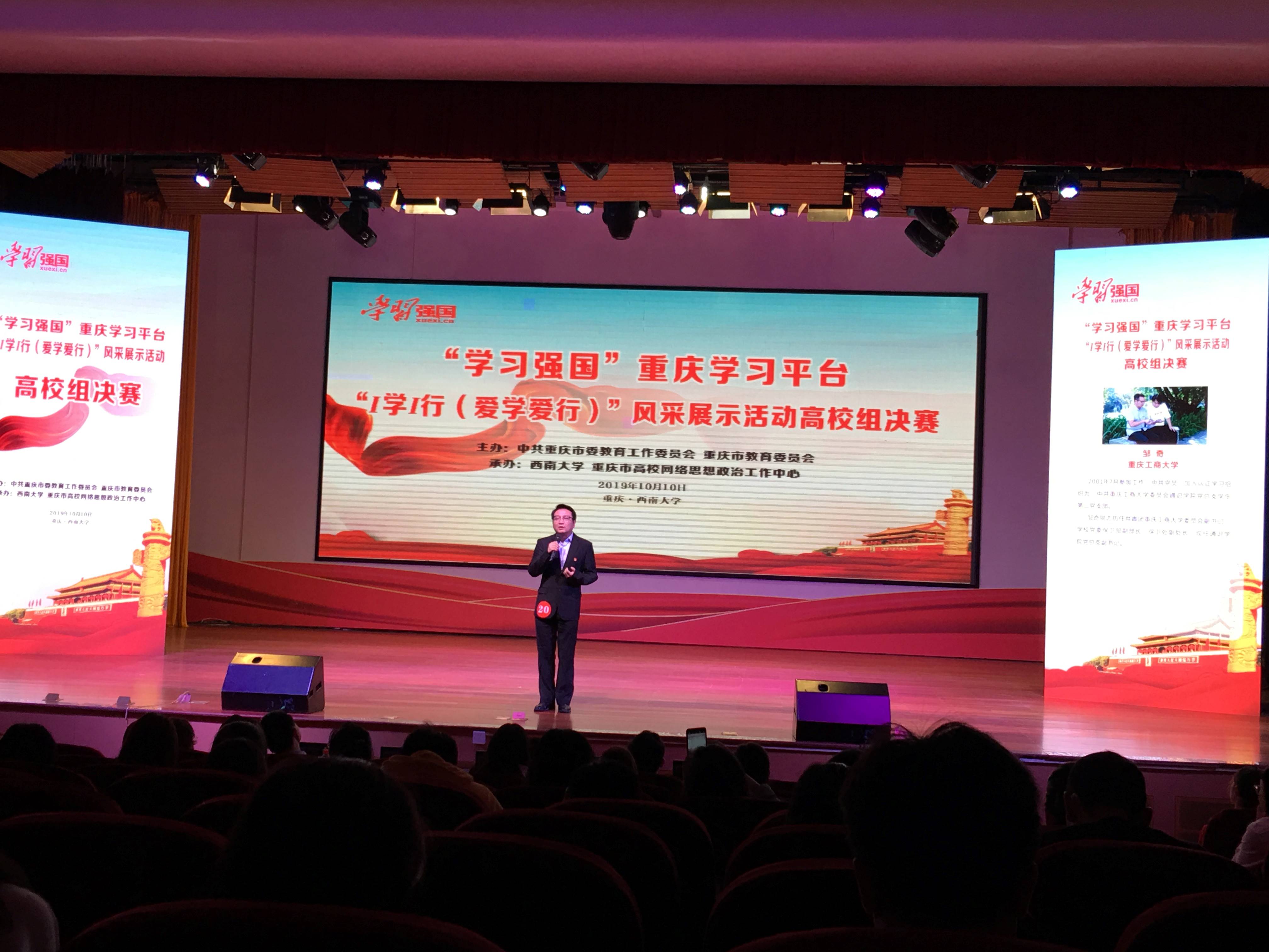 为学习贯彻习近平新时代中国特色社会主义思想,进一步激发高等教育系统党员群众学习热情,以学习实绩献礼新中国成立70周年,10月10日,“学习强国”重庆学习平台“I学I行(爱学爱行)”风采展示活动高校组决赛在Beat365中文官方网站举行。